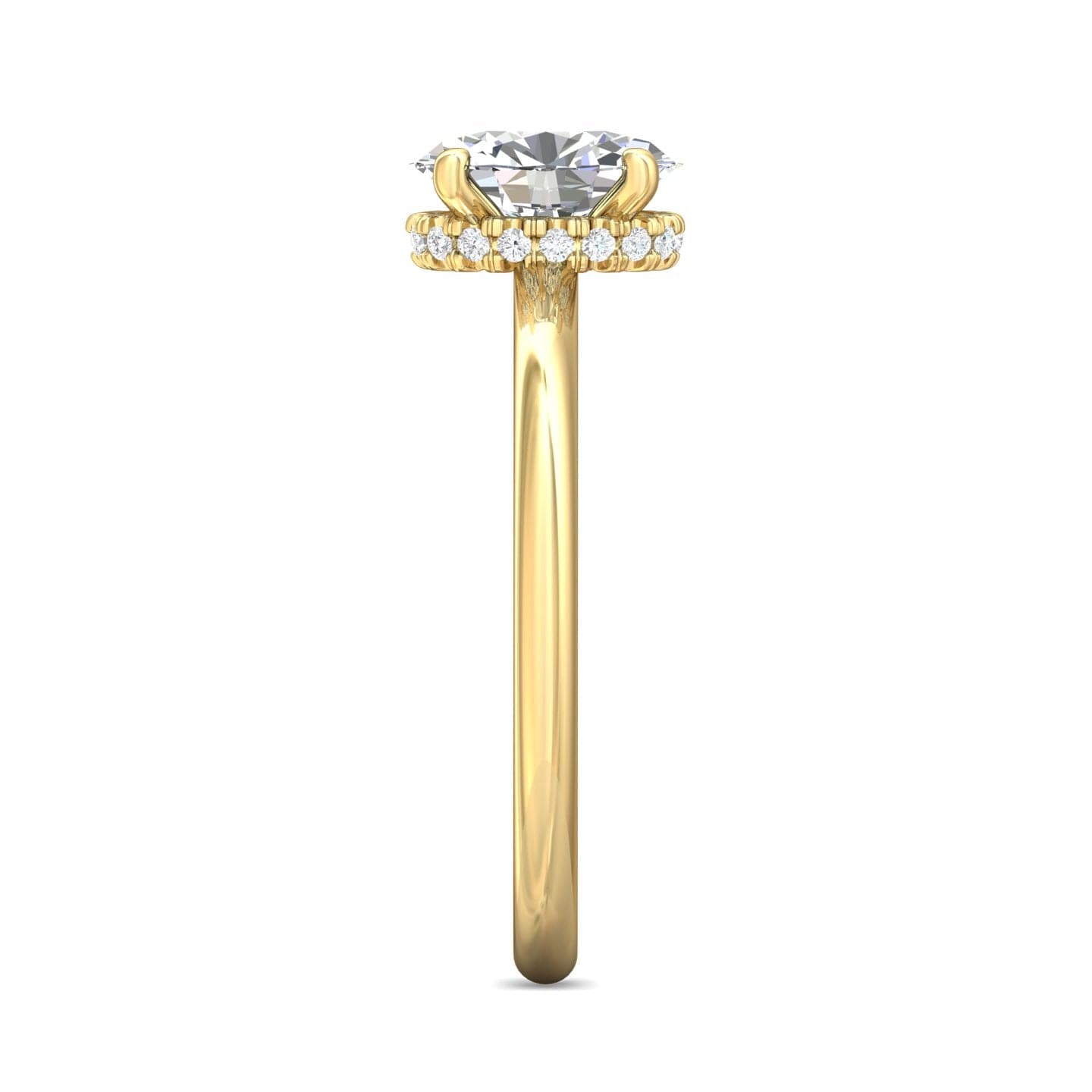 The solitaire is the ultimate classic engagement ring style. Designed to showcase your choice of diamond. The slender silhouette and polished finish of this FlyerFit engagement ring demonstrate timeless design. Add a hidden halo under the center for a stunning effect.