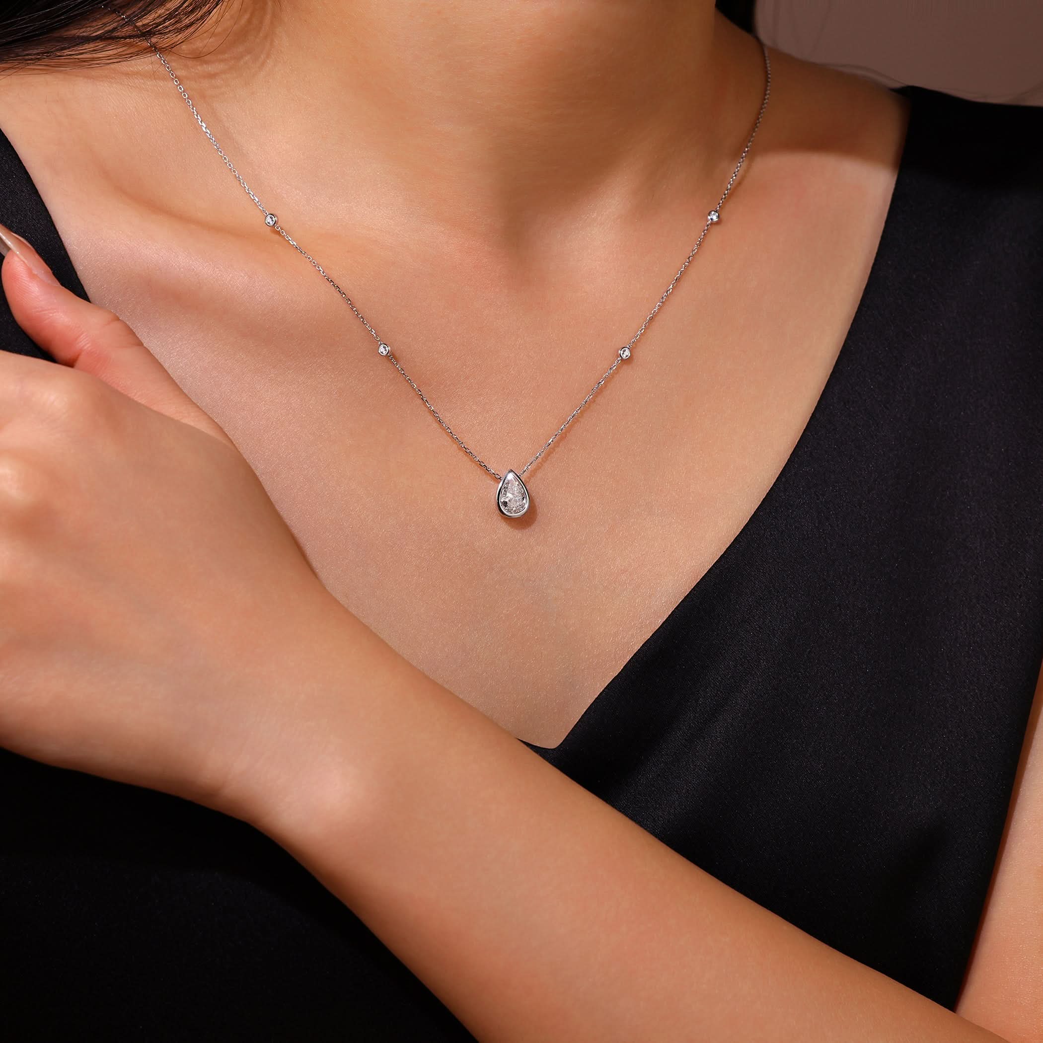 Diamond by the Yard Necklace with Bezel Set Pear Pendant