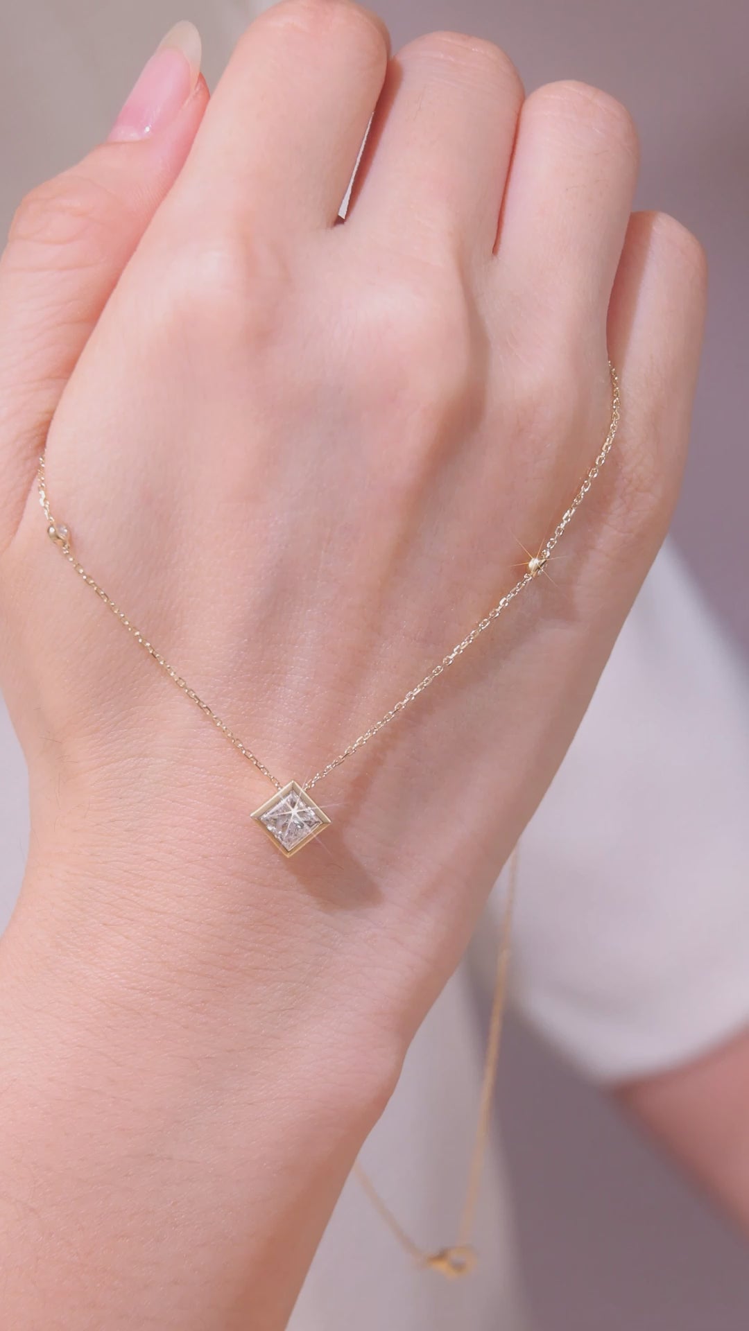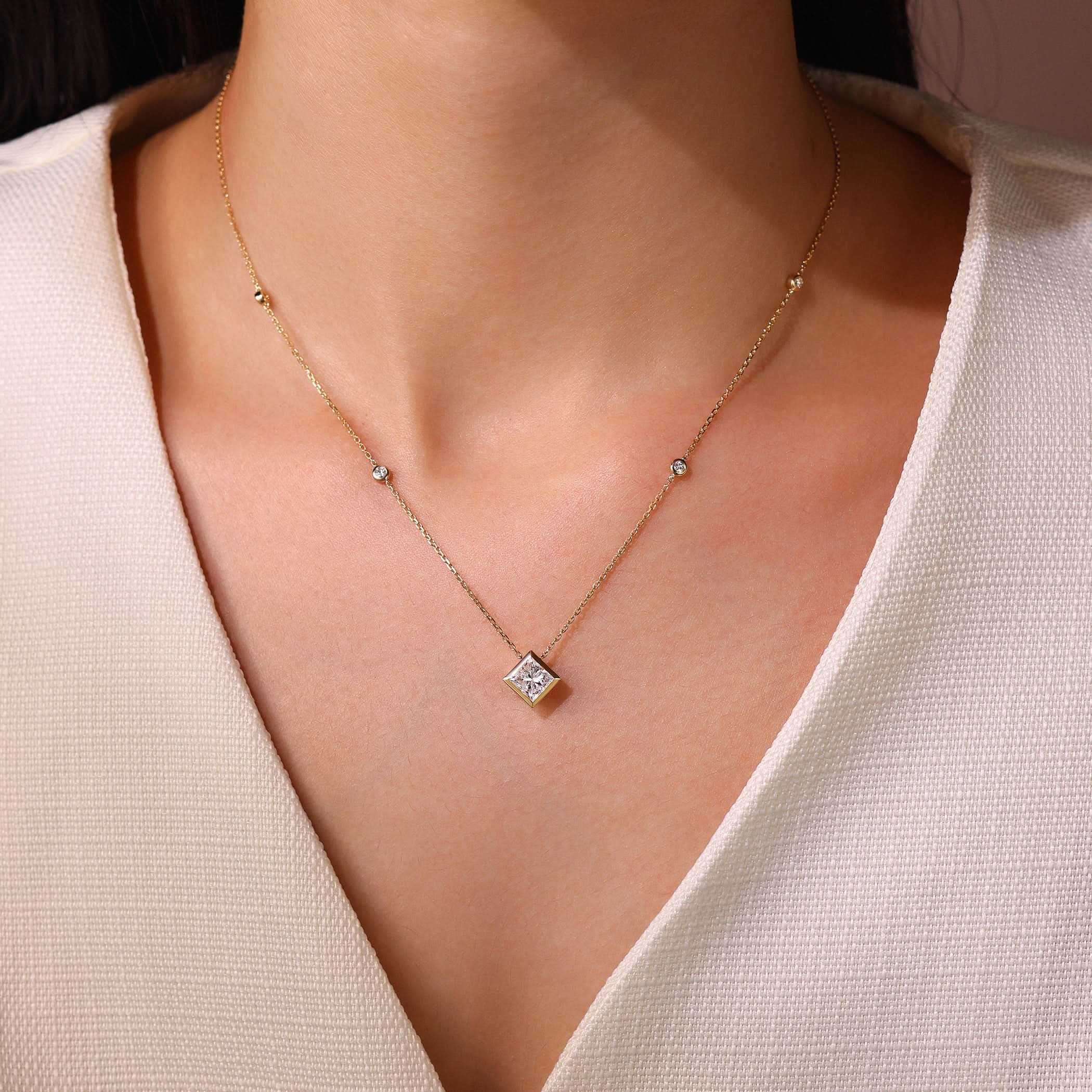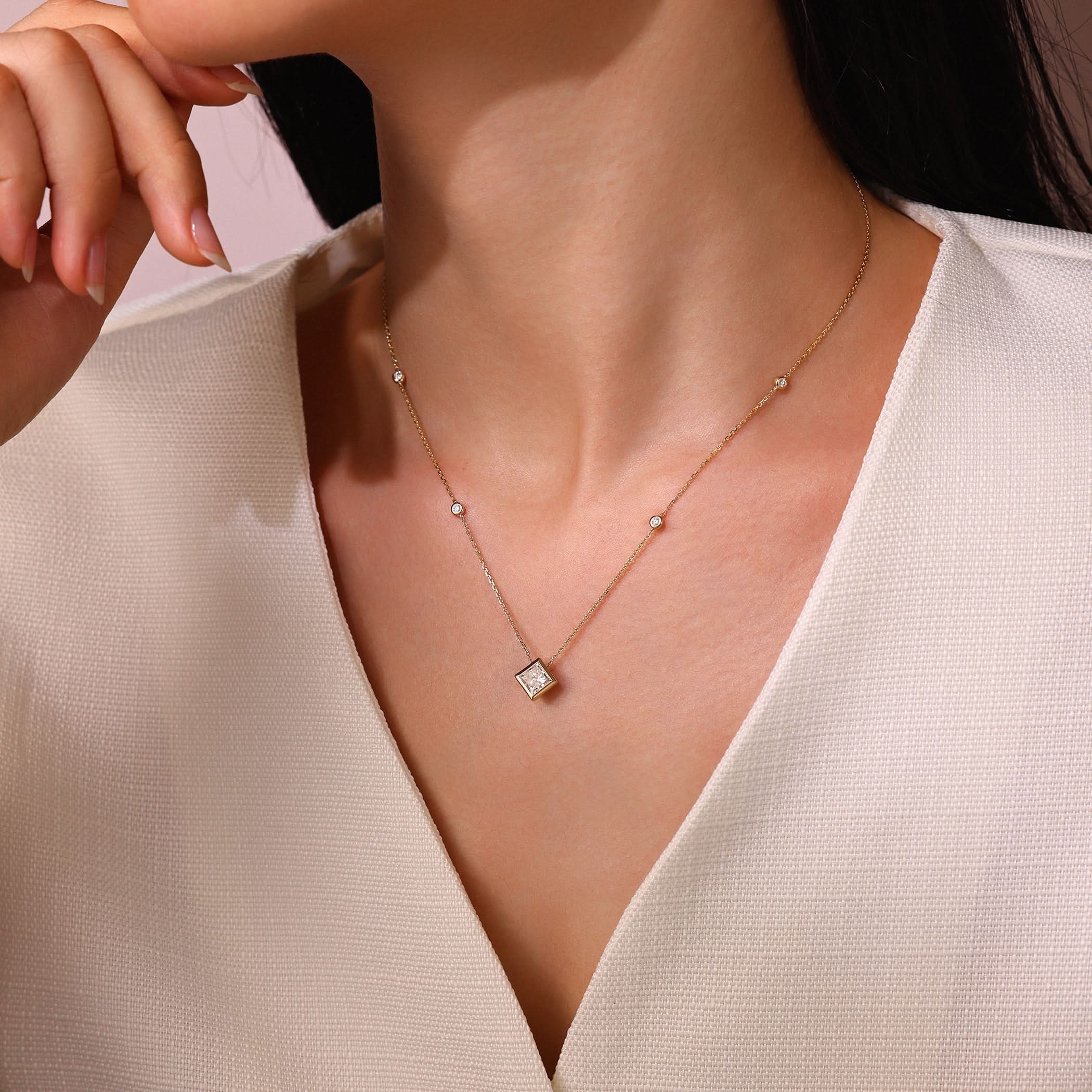 Diamond by the Yard Necklace with Bezel Set Princess Diamond Pendant
