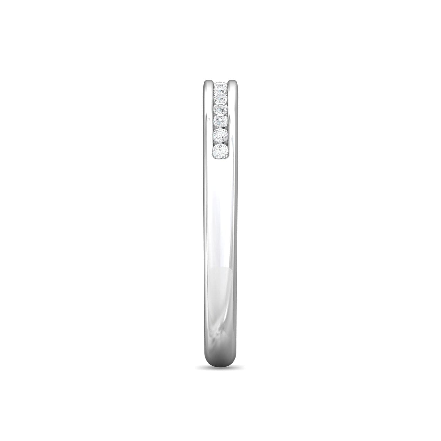 The shimmering channel set diamonds in this elegant FlyerFit wedding band designed to maximize sparkle.