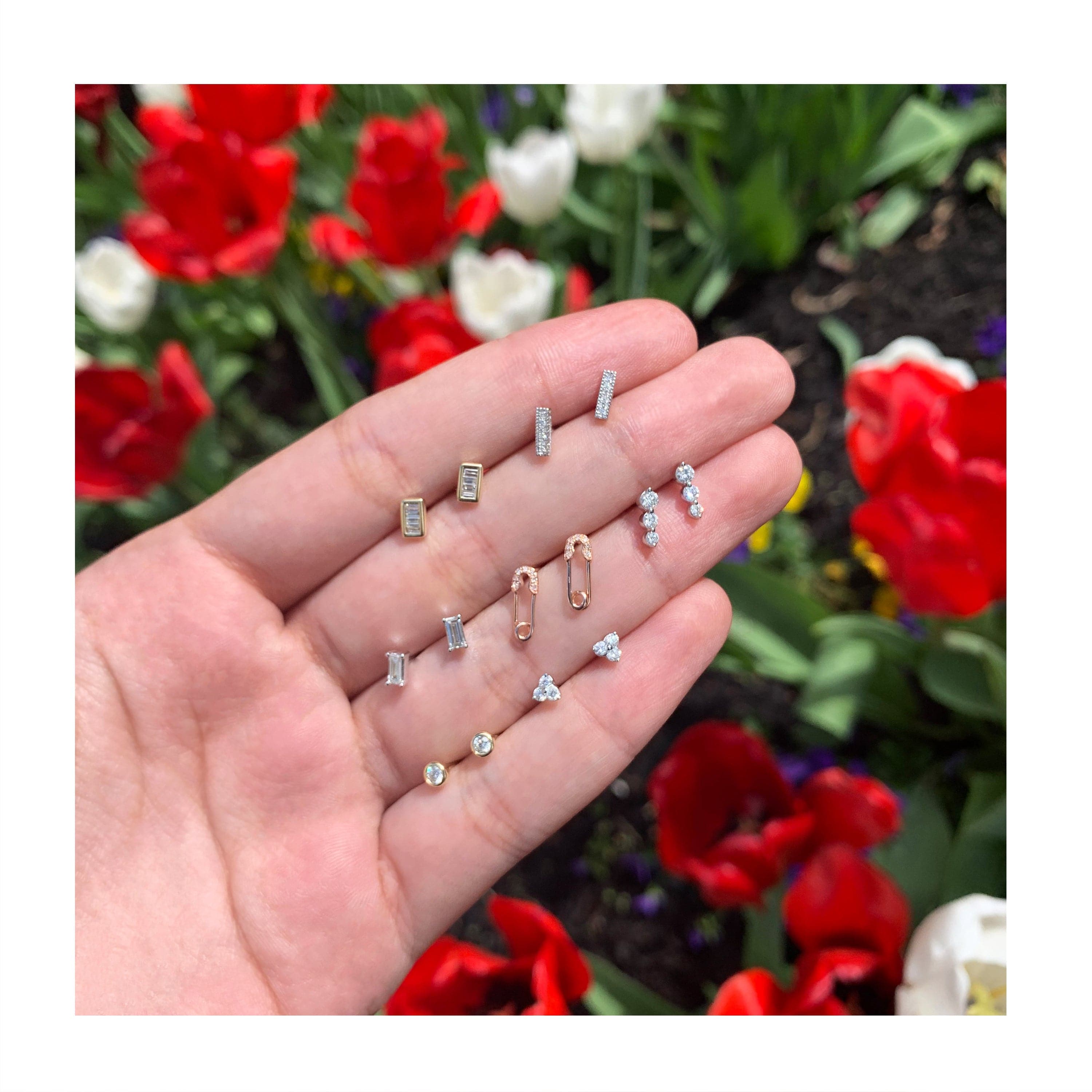 14K GOLD DIAMOND 3-STONE BAR STUD EARRING