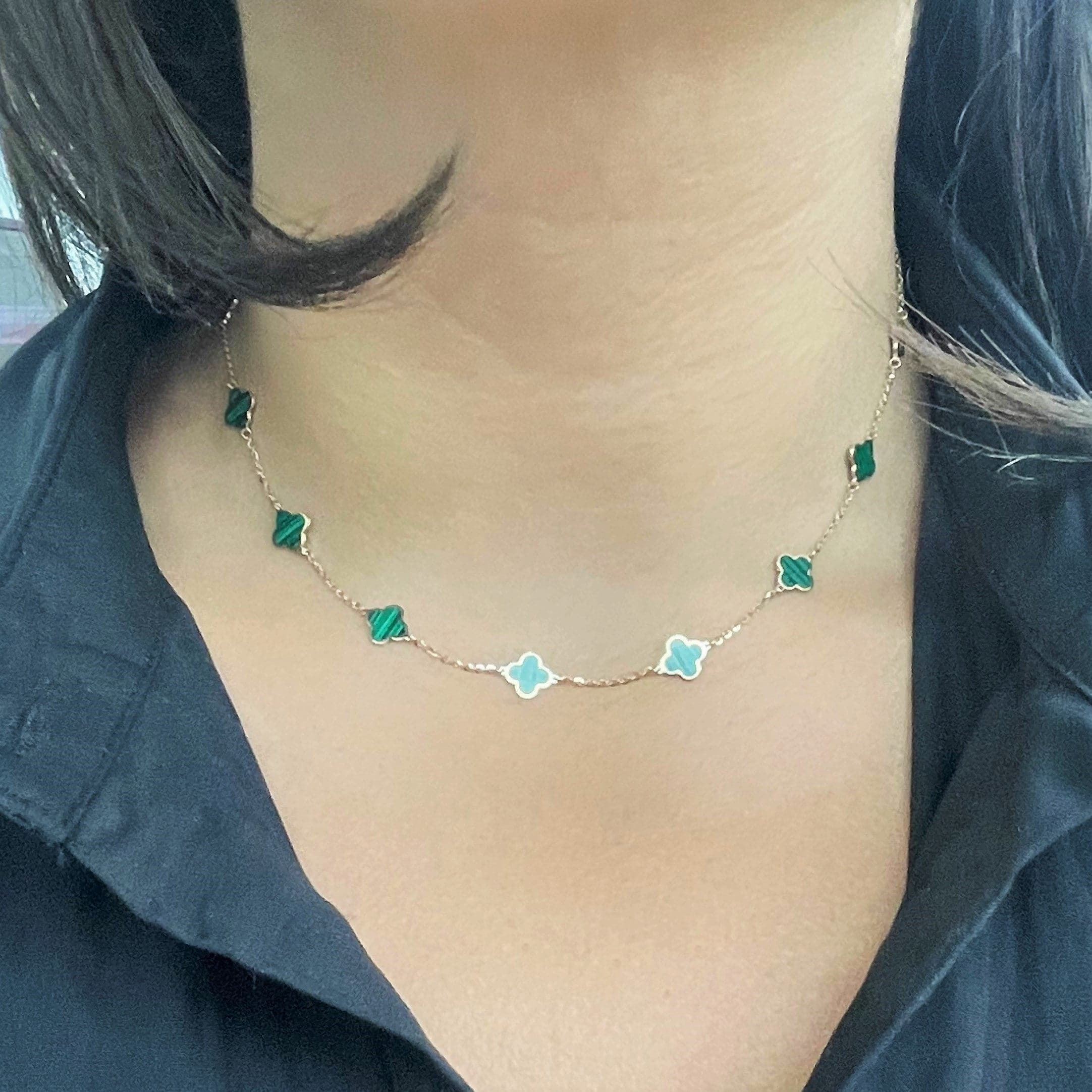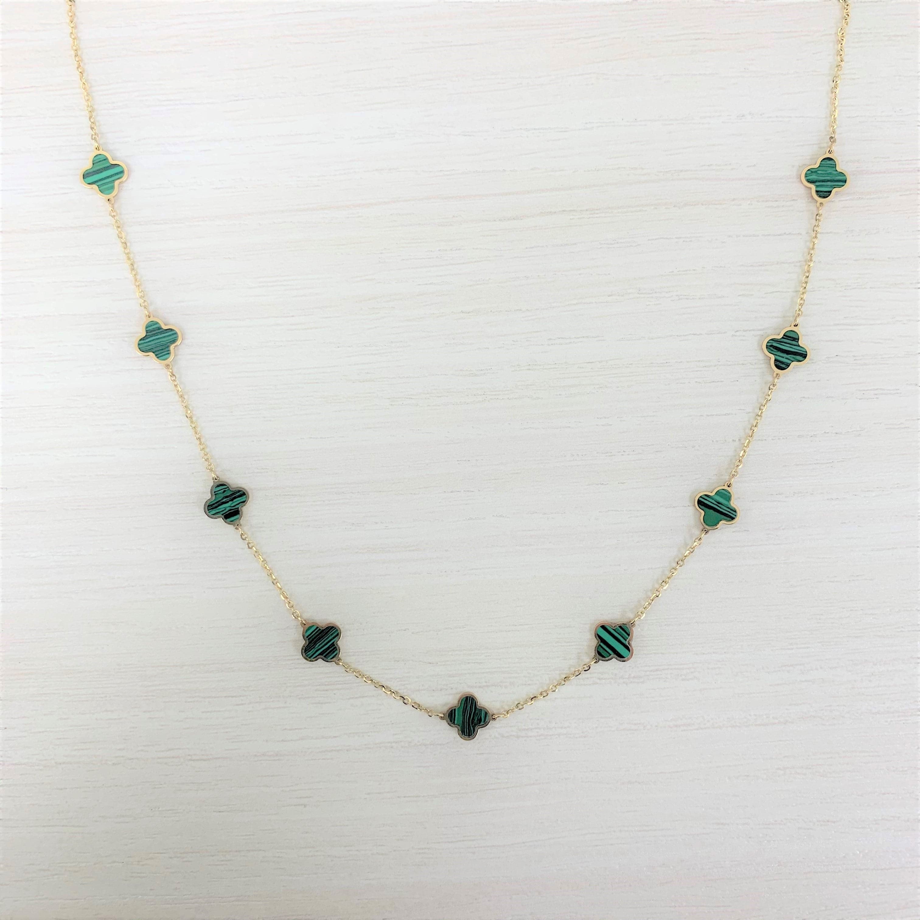 14K GOLD & MALACHITE CLOVER NECKLACE