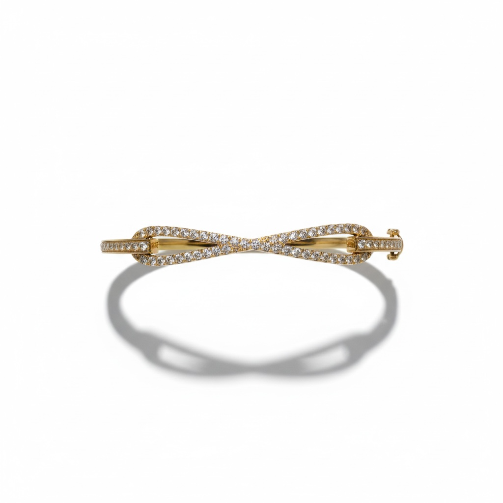 A timeless symbol of love and continuity, this elegant bangle features a sweeping infinity motif adorned in pavé-set diamonds. Available in 14k white or yellow gold, the design merges graceful curves with radiant sparkle for a piece that is both meaningful and effortlessly luxurious. Perfect for stacking or wearing solo as a statement of eternal elegance.