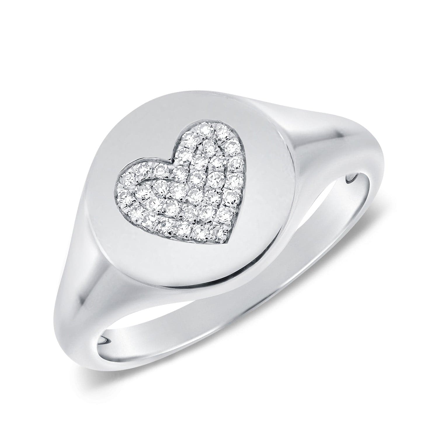 14K GOLD DIAMOND HEART SIGNET PINKY RING