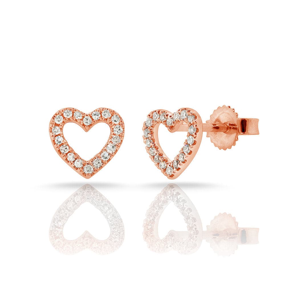 14k Gold & Diamond Open Heart Stud Earrings