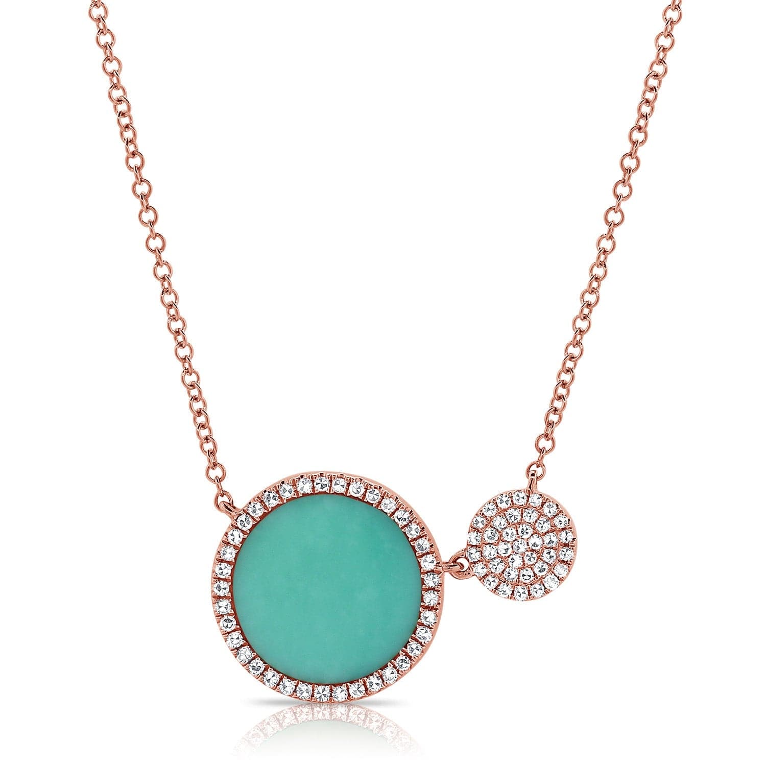 This Beautiful and Vibrant Turquoise Necklace is crafted of 14K Gold featuring approximately 0.22 ct. of round Natural Diamonds and a Gorgeous Turquoise 1.68 ct. Circle cut stone. Chain is Adjustable to 16, 17 & 18"