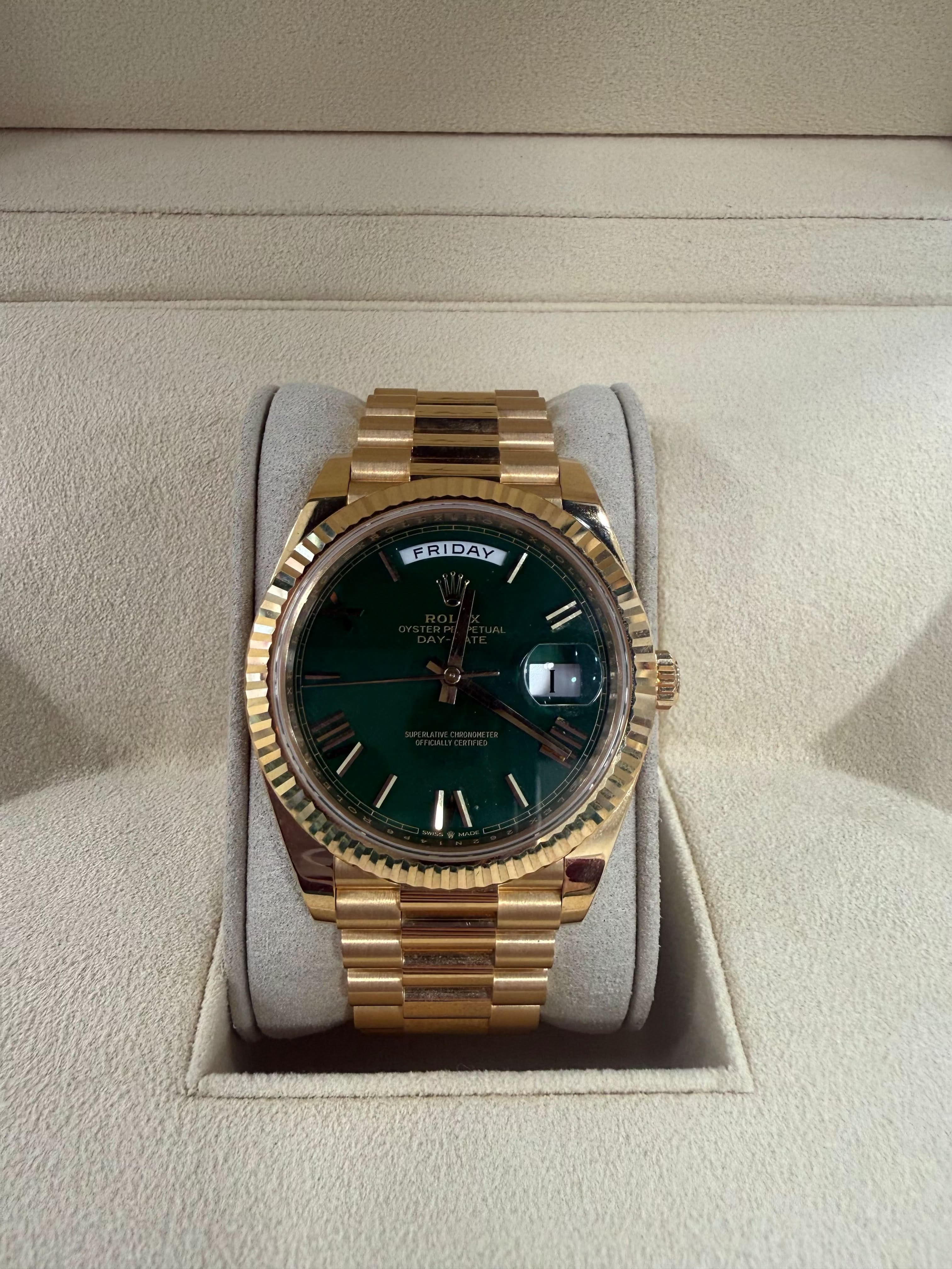 Rolex Men's Day Date President 40mm Yellow Gold Green Roman Dial 2024
