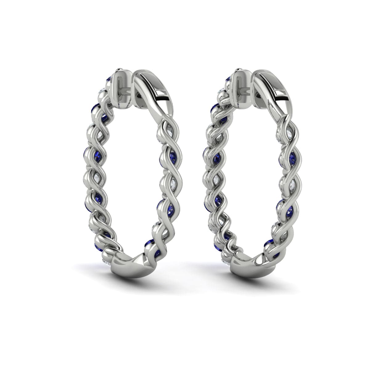 Inside Out Diamond and Blue Sapphire Hoop Earrings