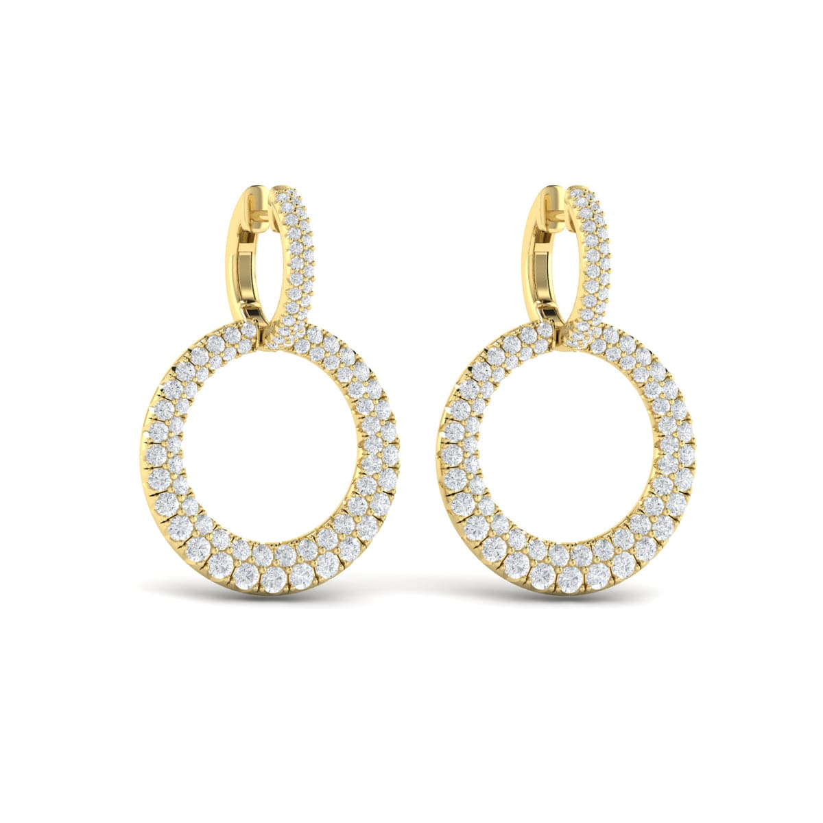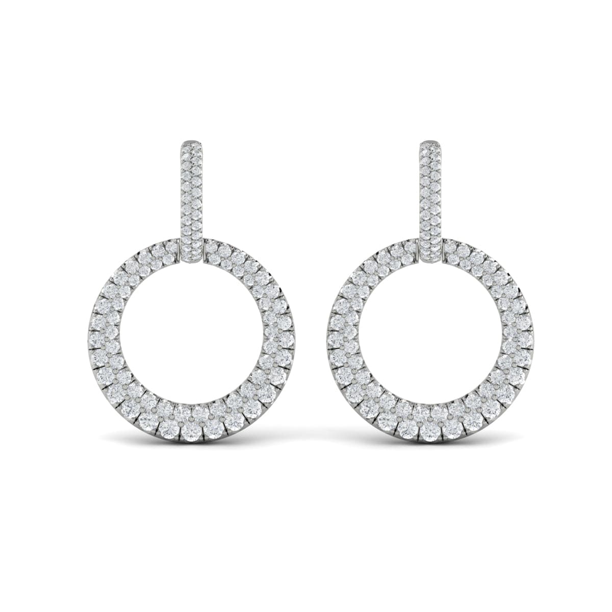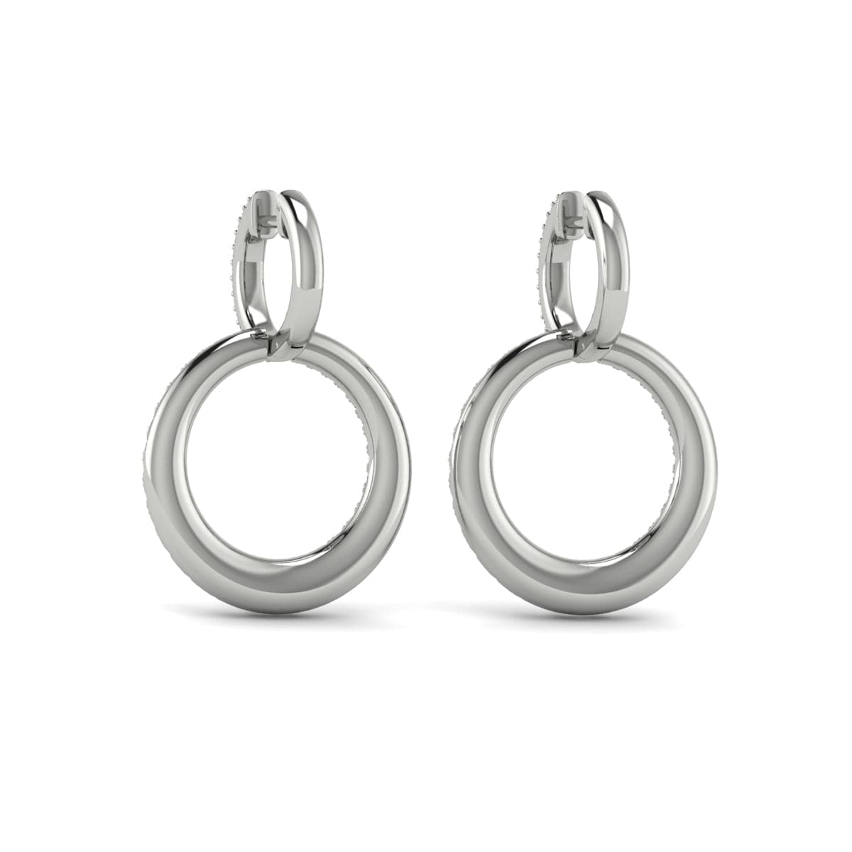 Diamond Two Row Open Circle Drop Huggie Earrings