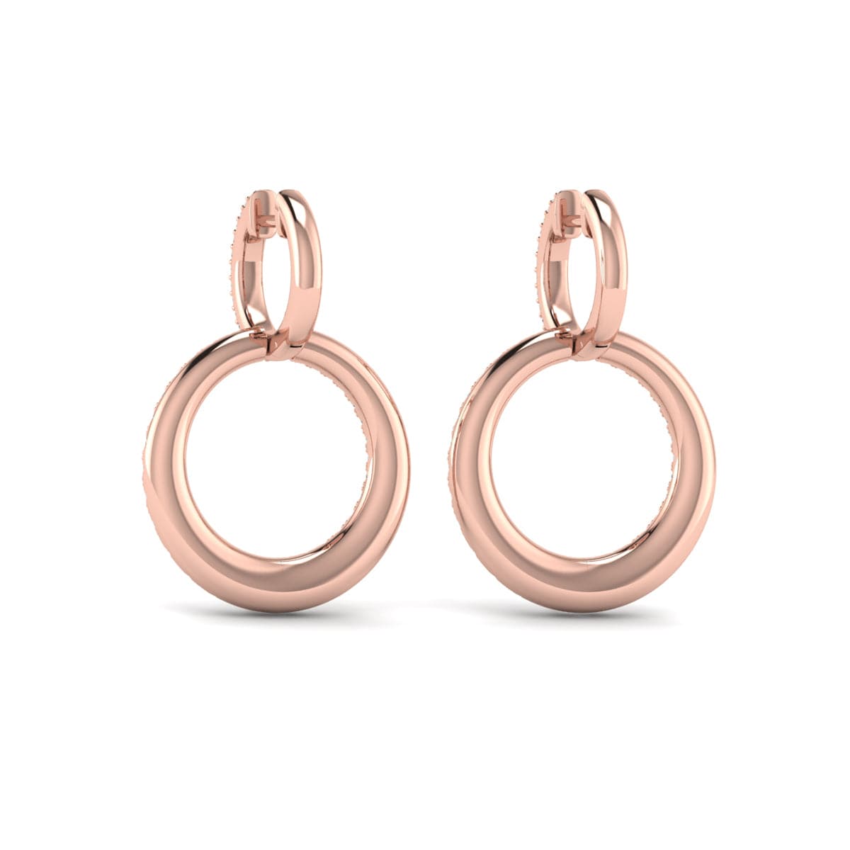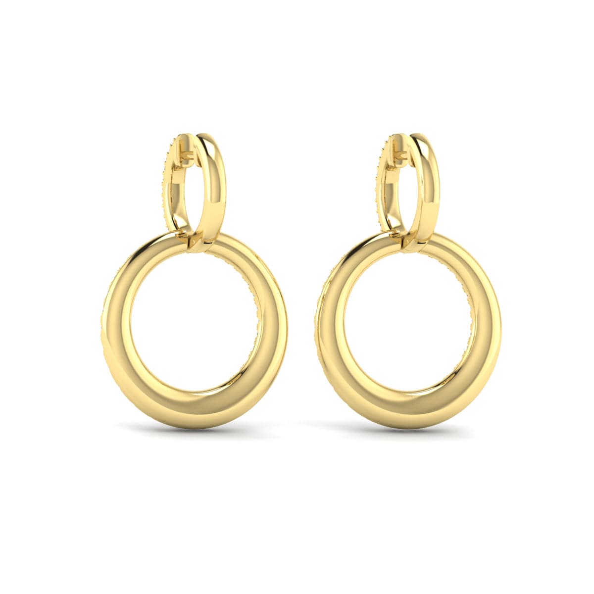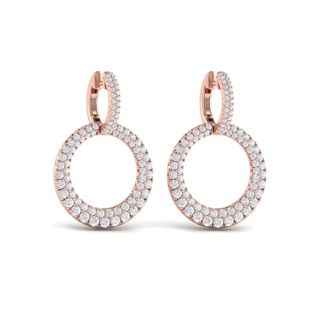 Diamond Two Row Open Circle Drop Huggie Earrings