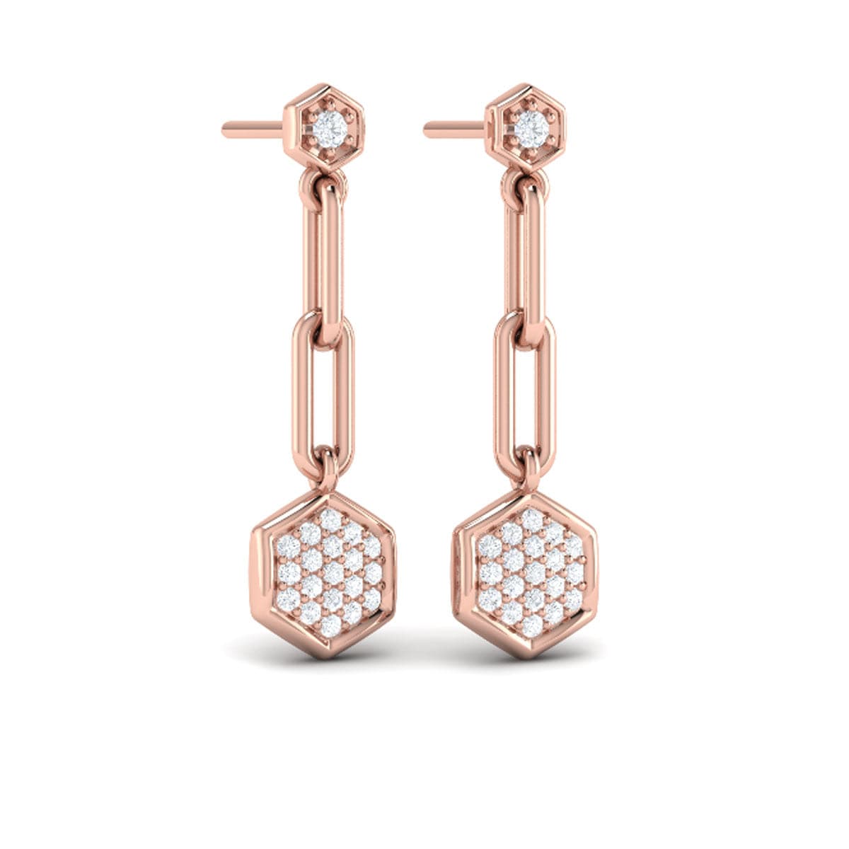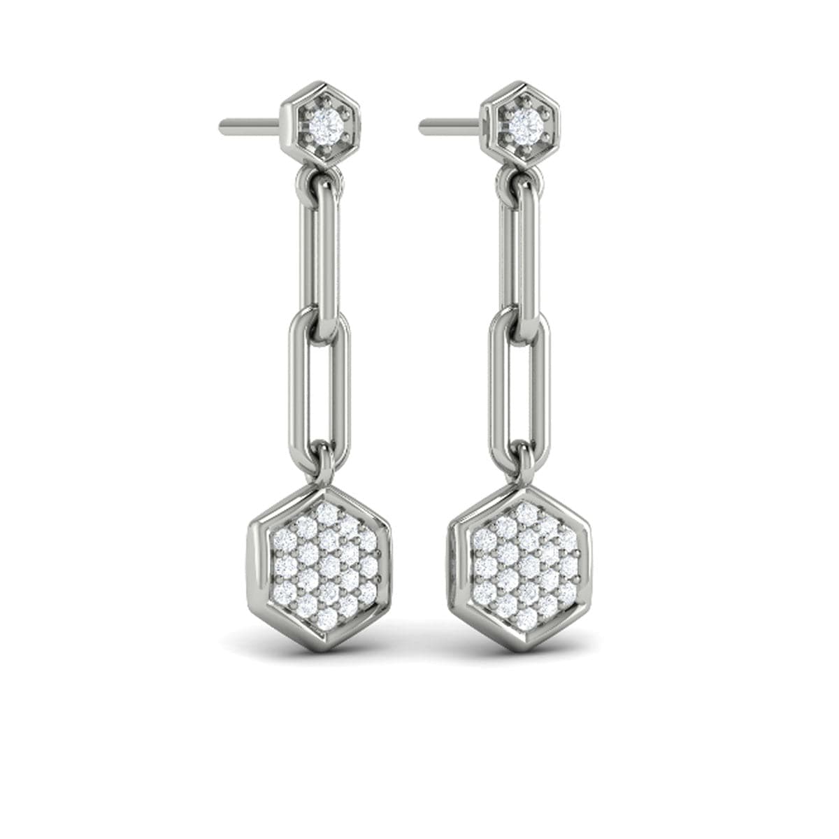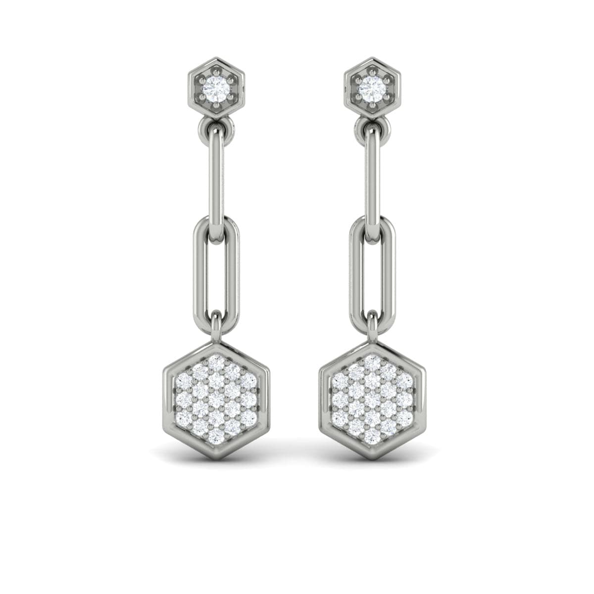 Diamond Honeycomb Link Long Drop Statement Earrings