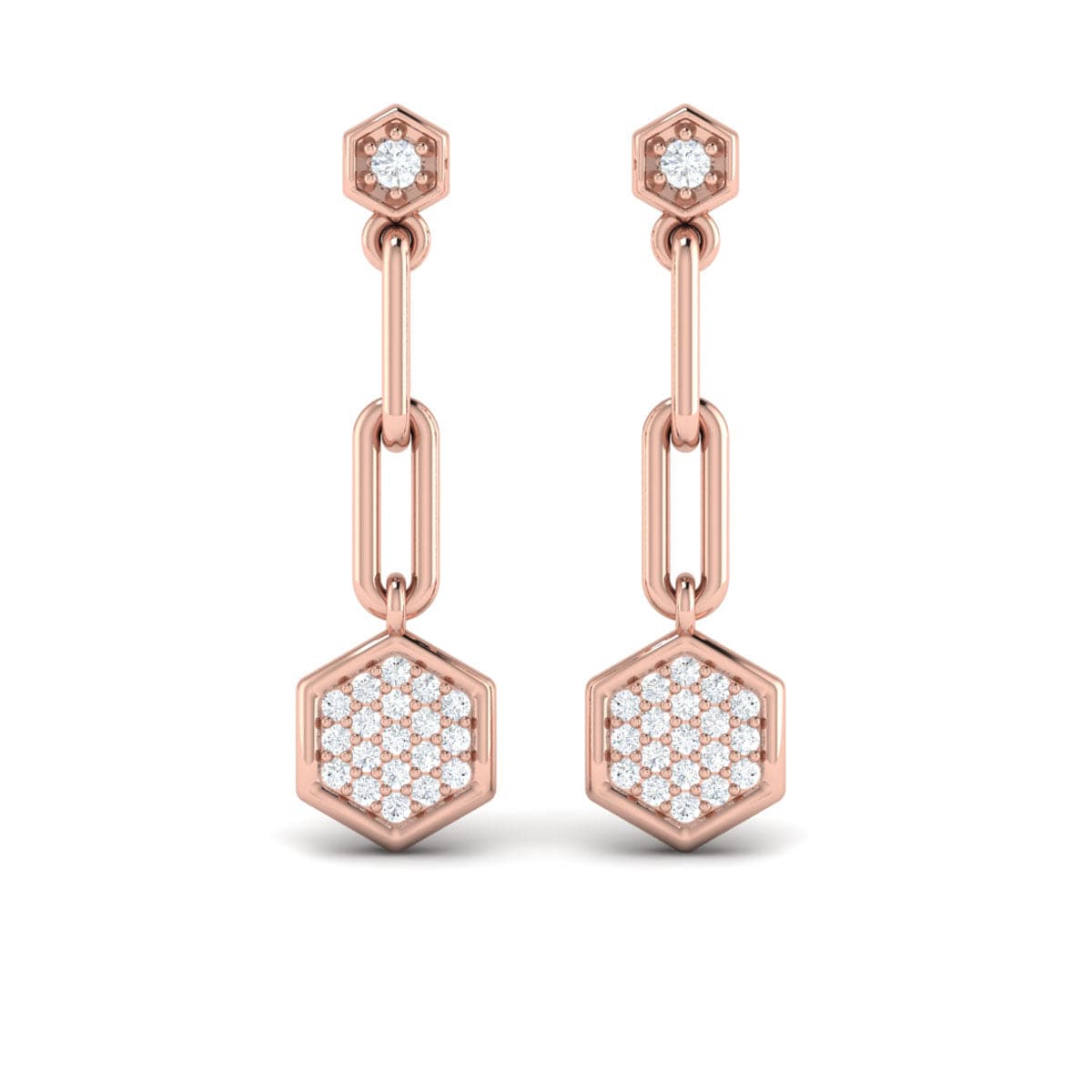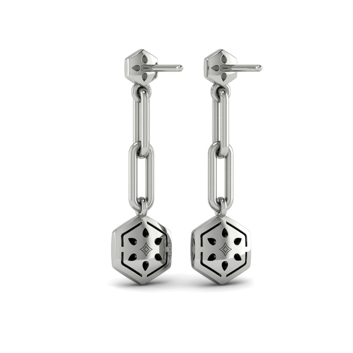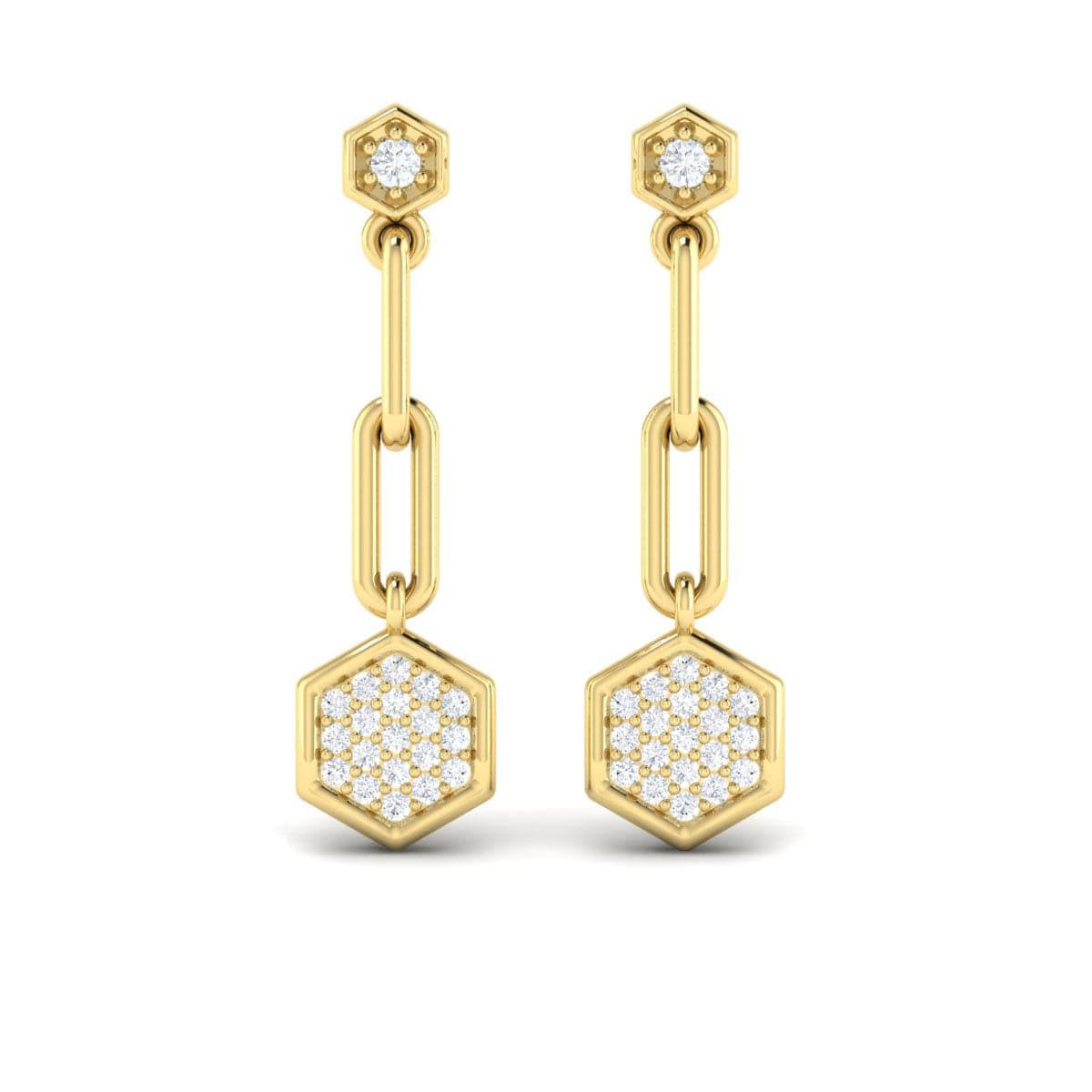 Diamond Honeycomb Link Long Drop Statement Earrings