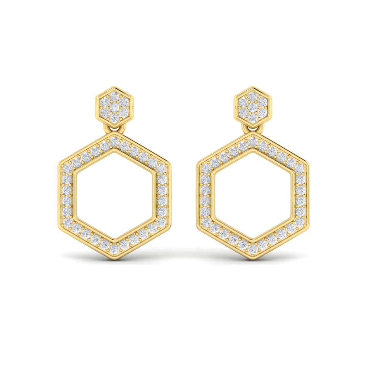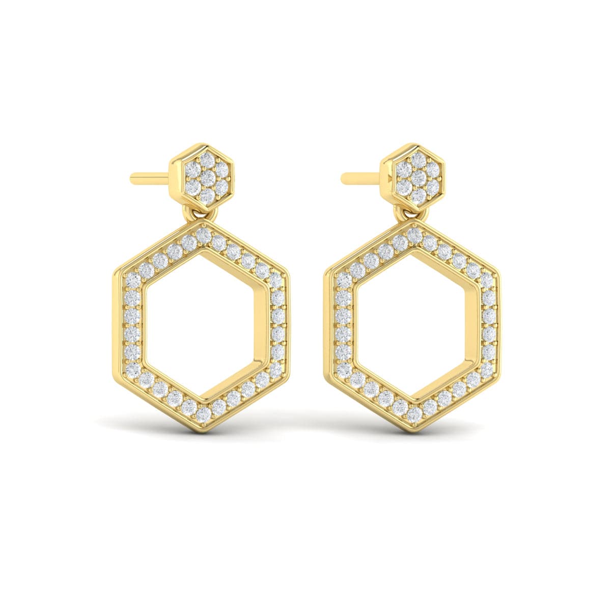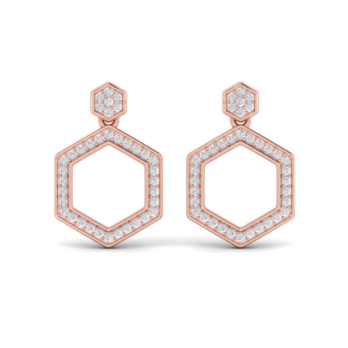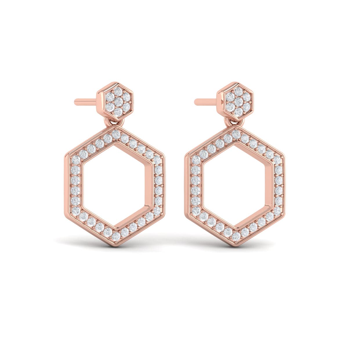 Channel Set Diamond Open Honeycomb Drop Stud Earrings