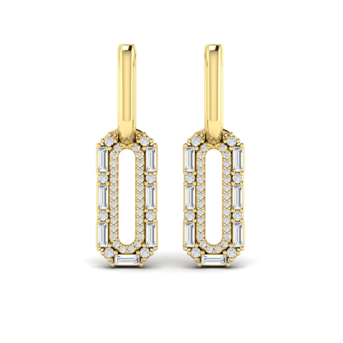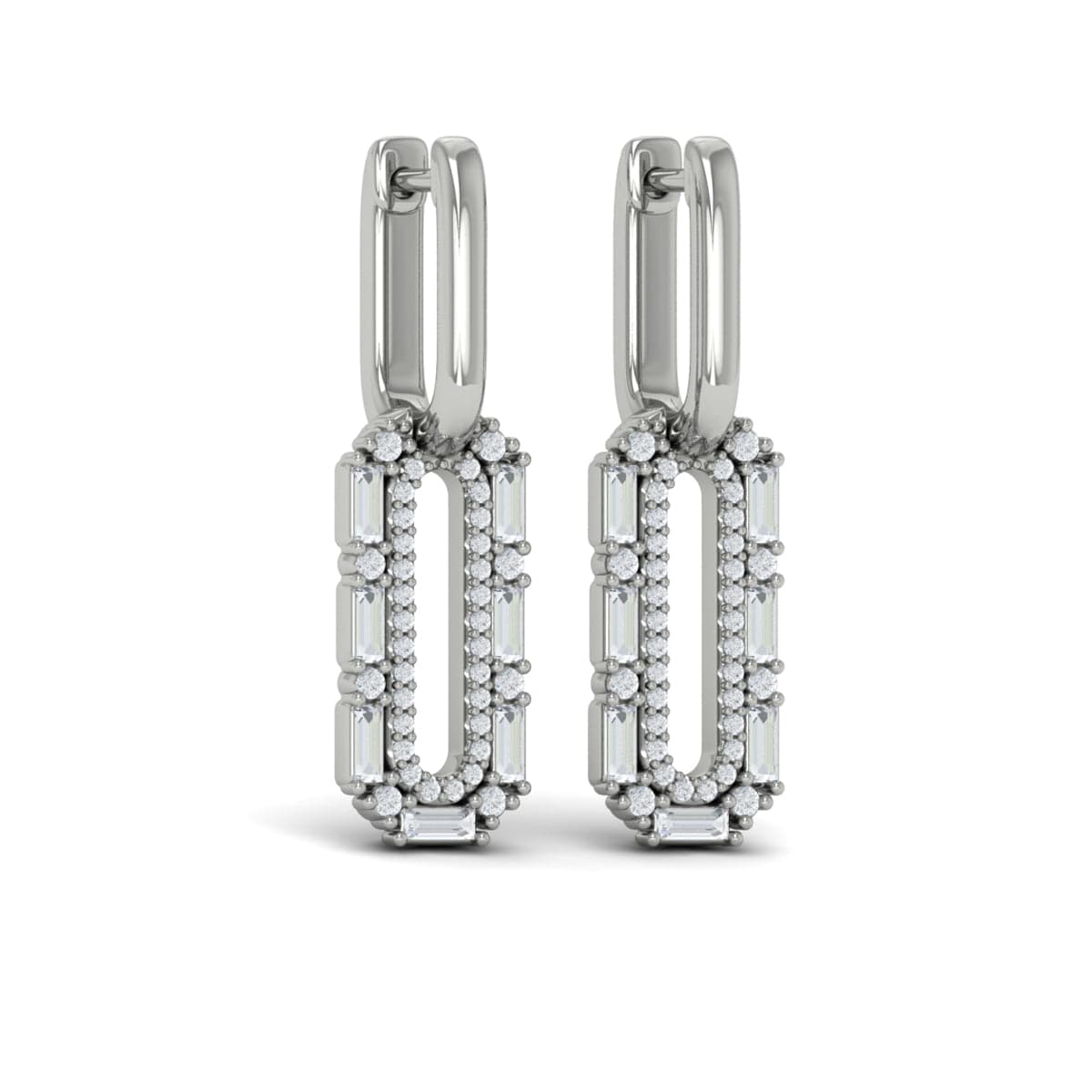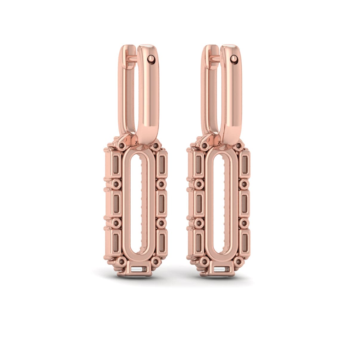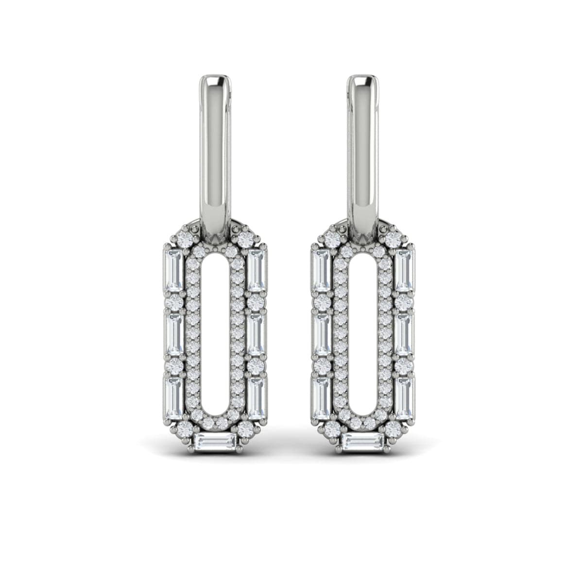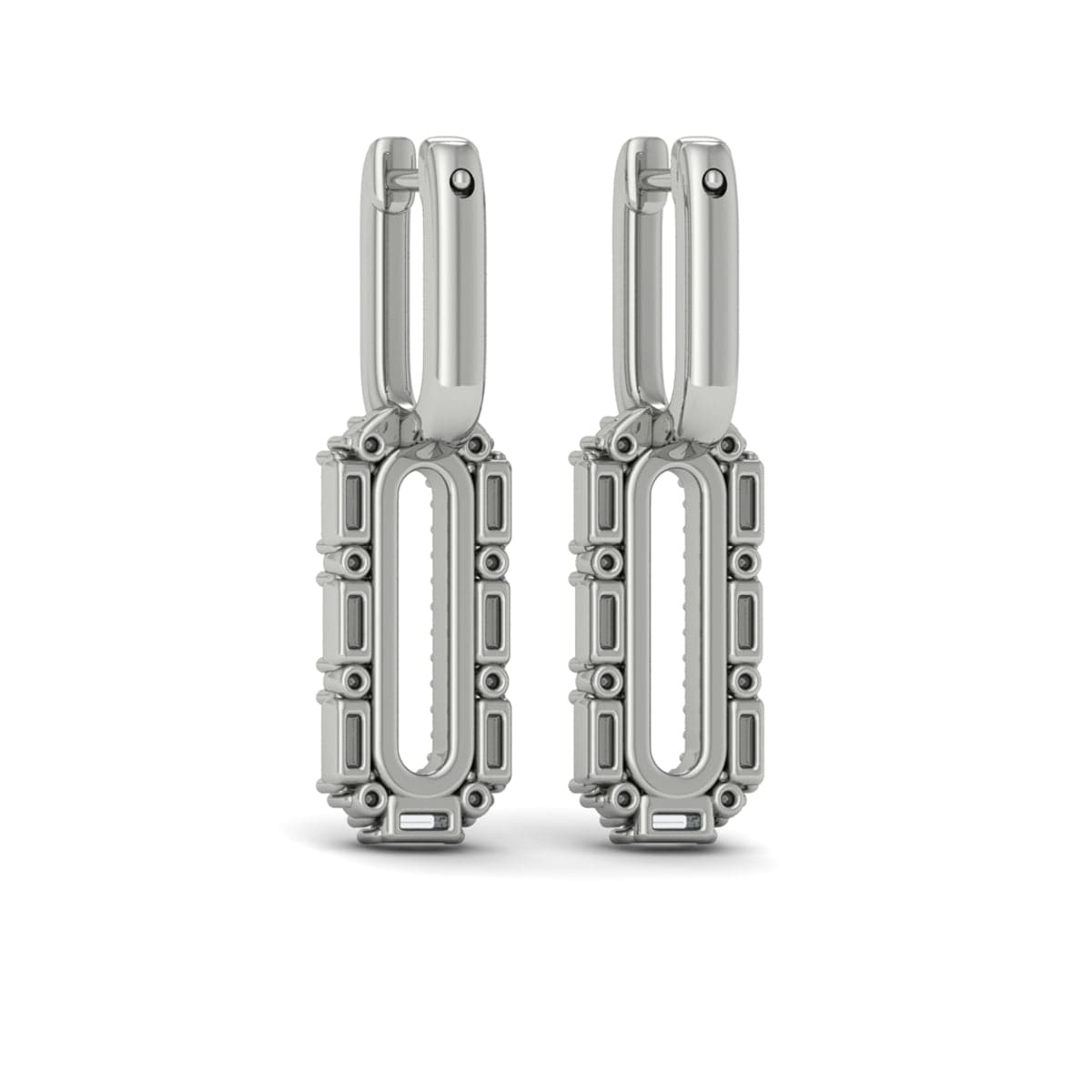 Diamond Baguette Double Row Link Drop Huggie Earrings