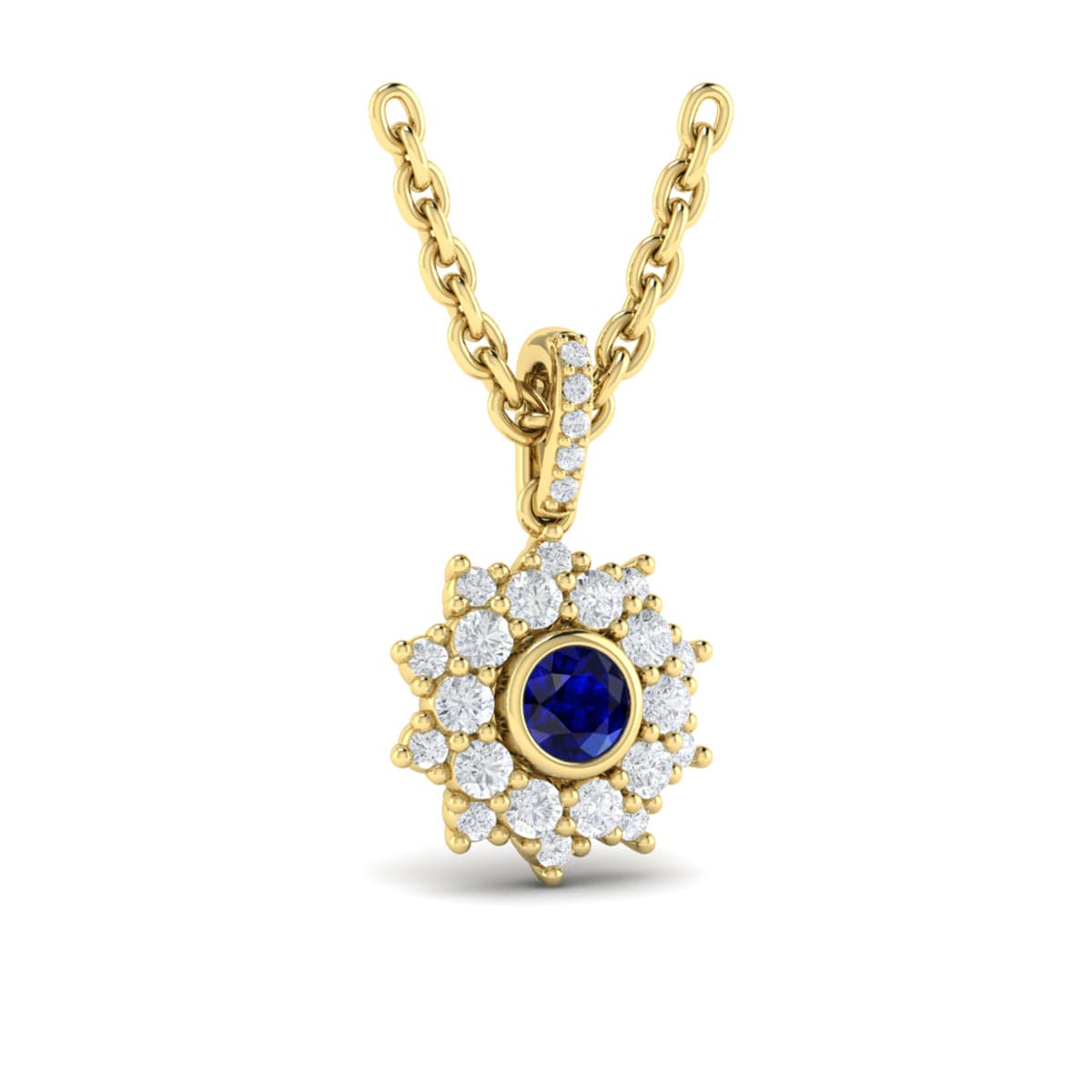 Diamond Star Cluster and Blue Sapphire Pendant Necklace