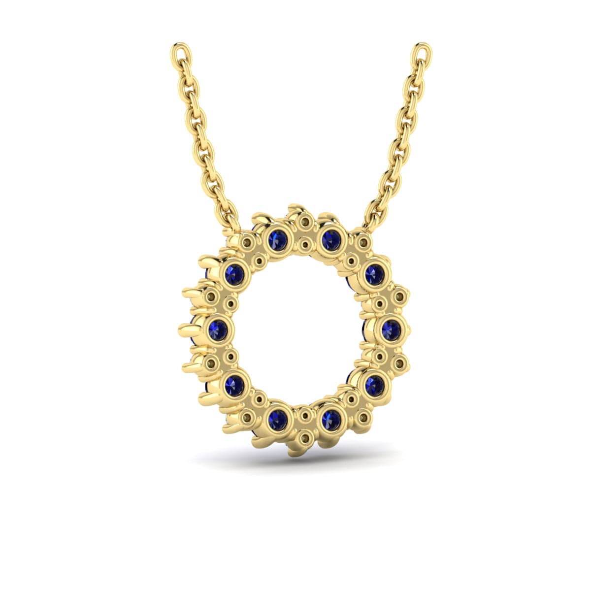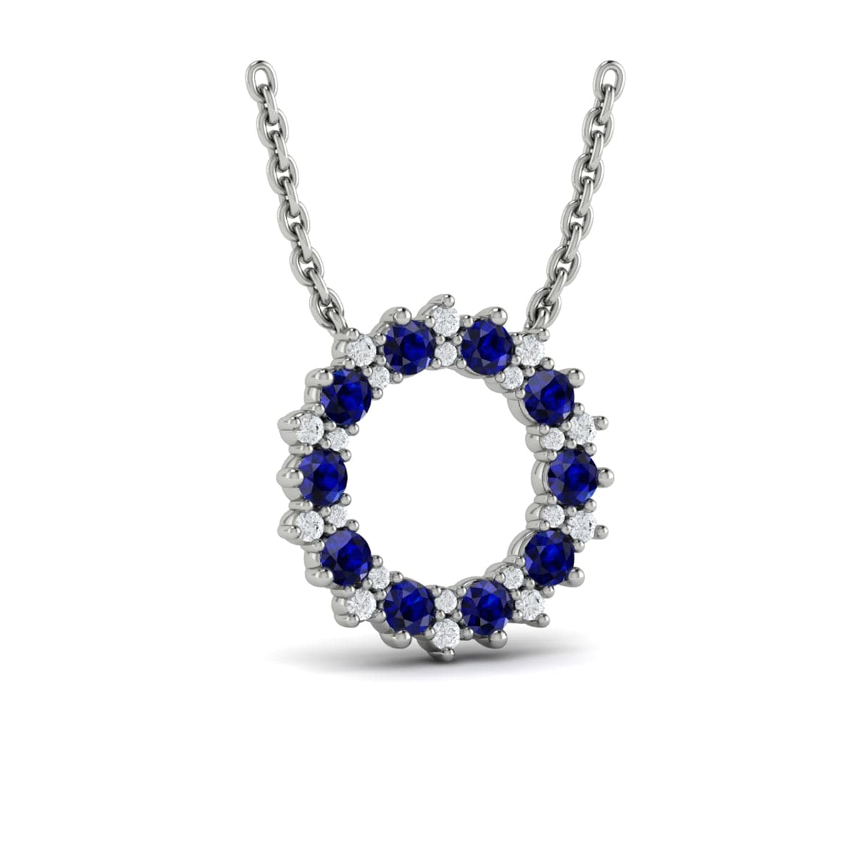 Diamond and Blue Sapphire Open Starburst Circle Pendant Necklace
