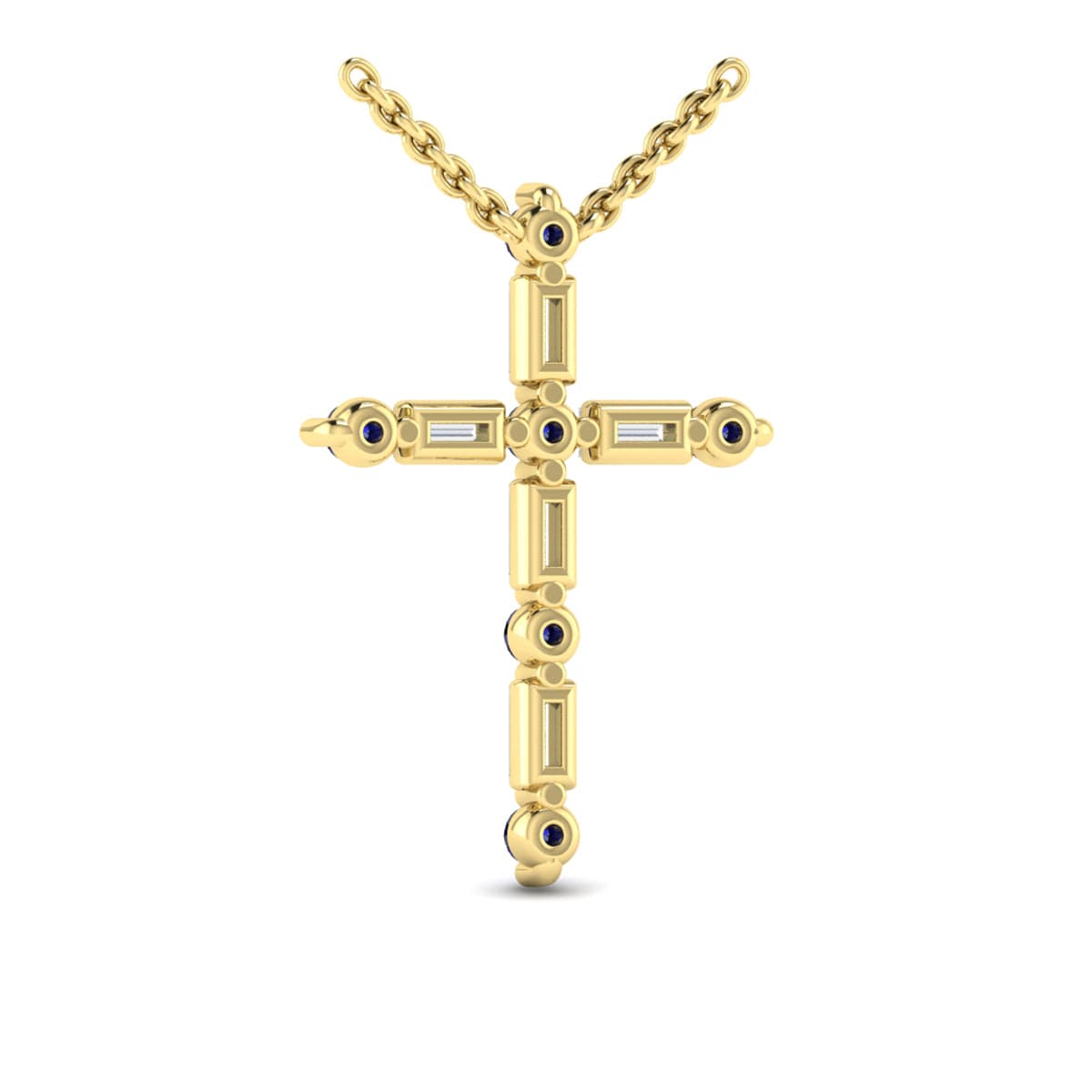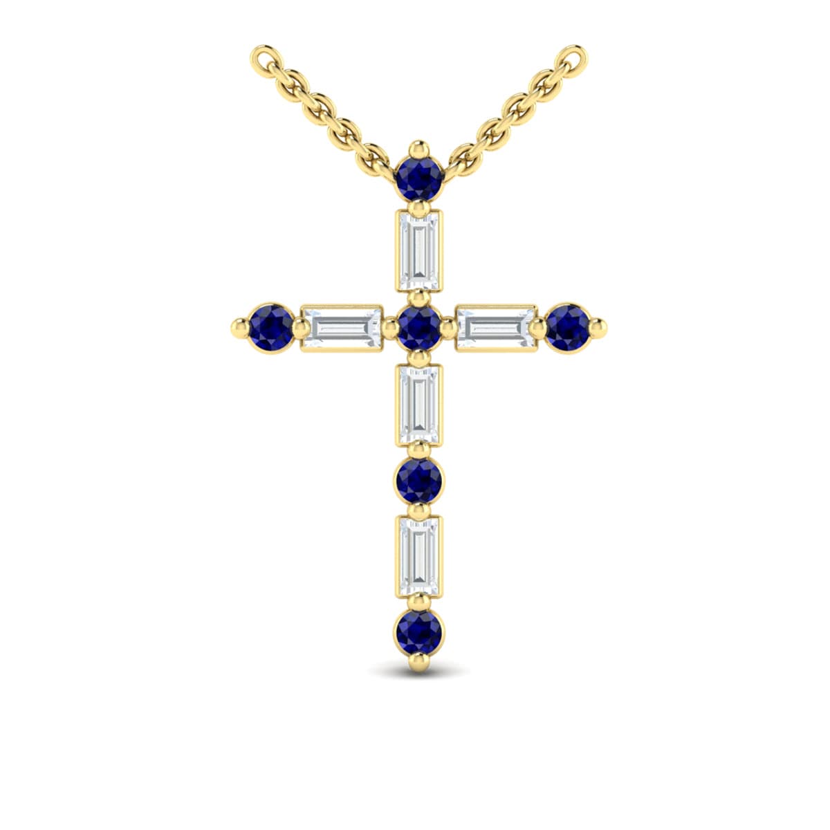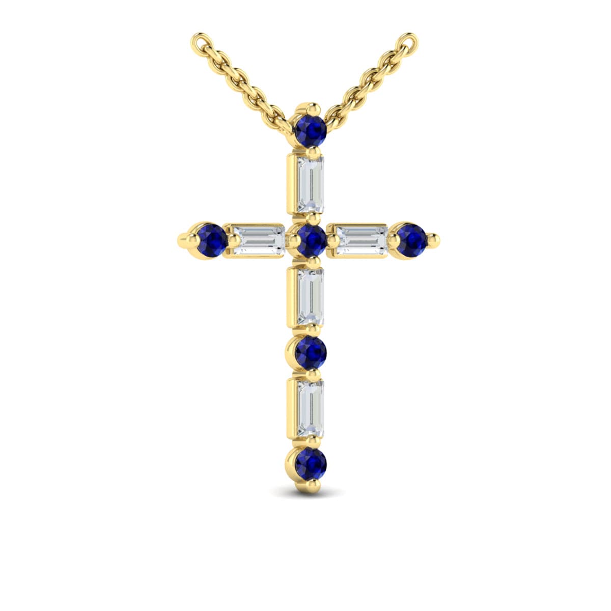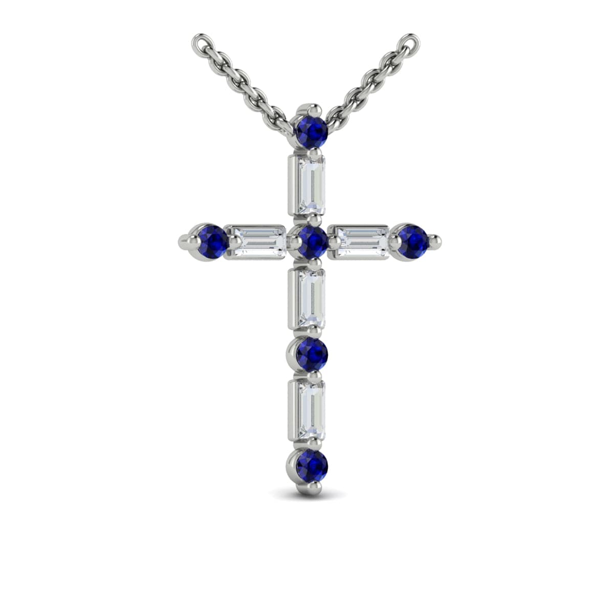 Diamond Baguette and Blue Sapphire Cross Pendant Necklace