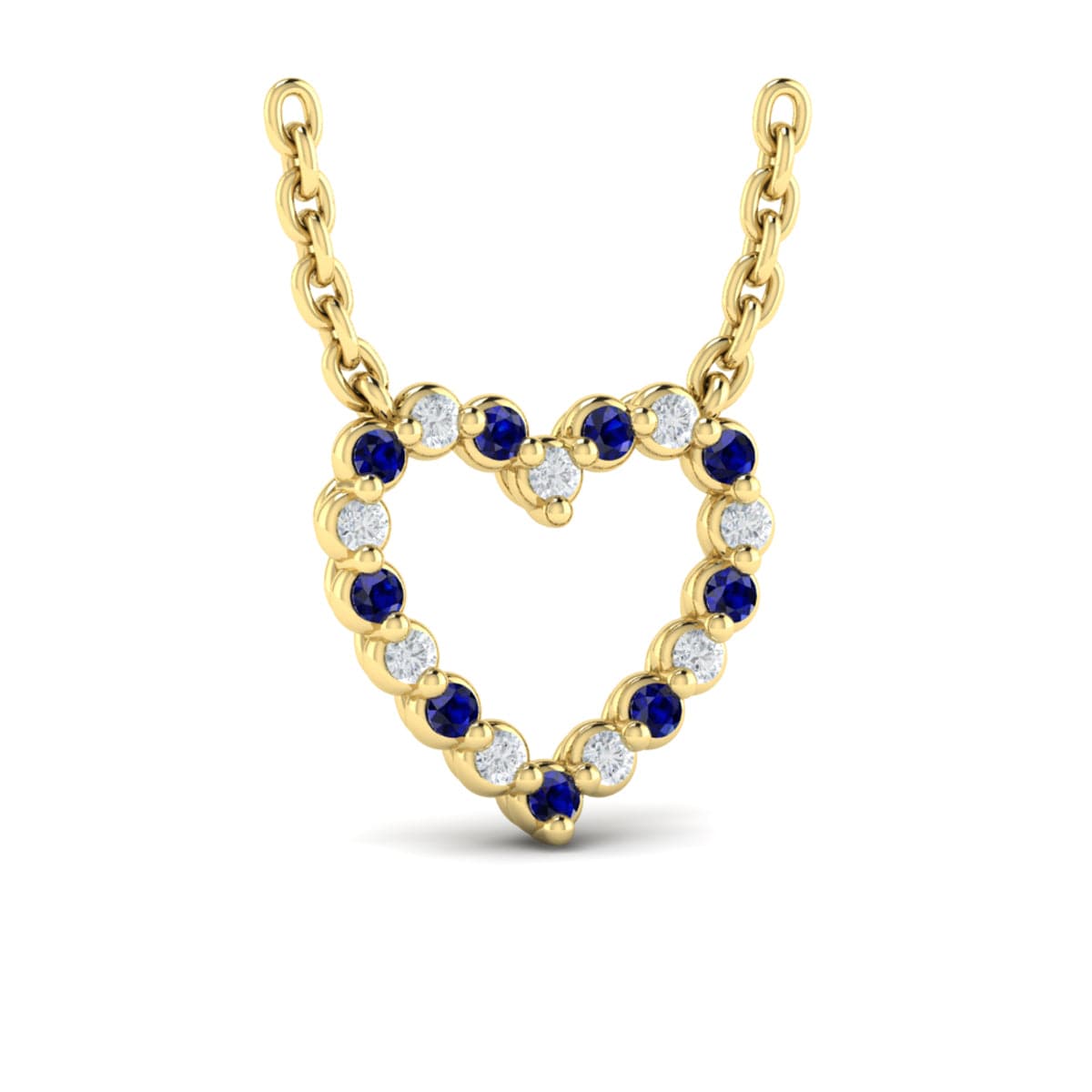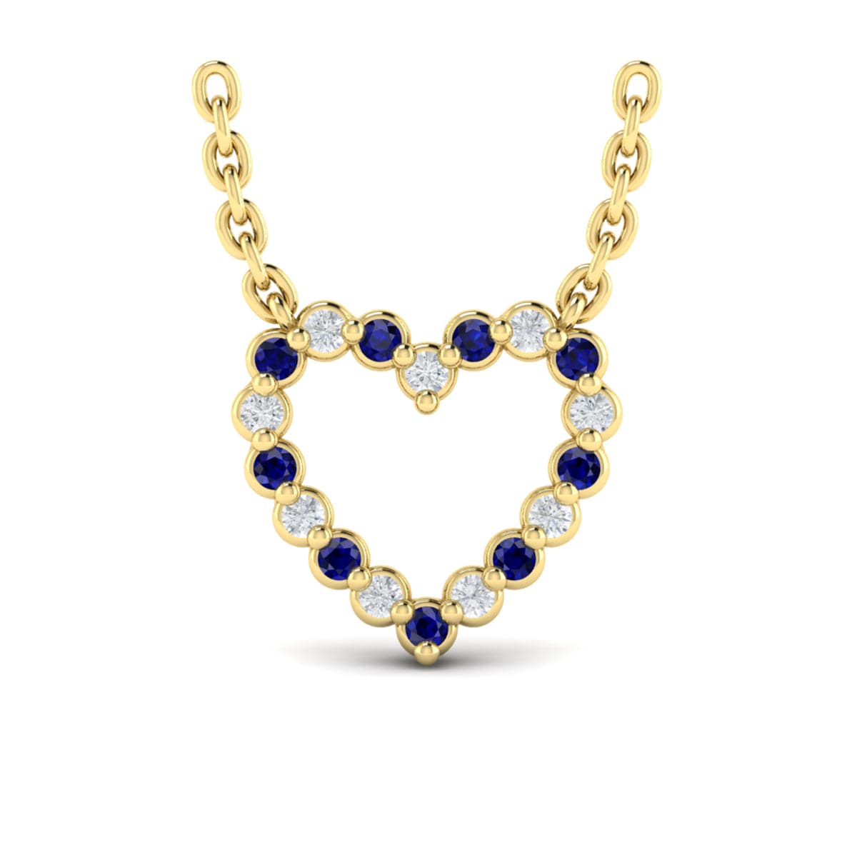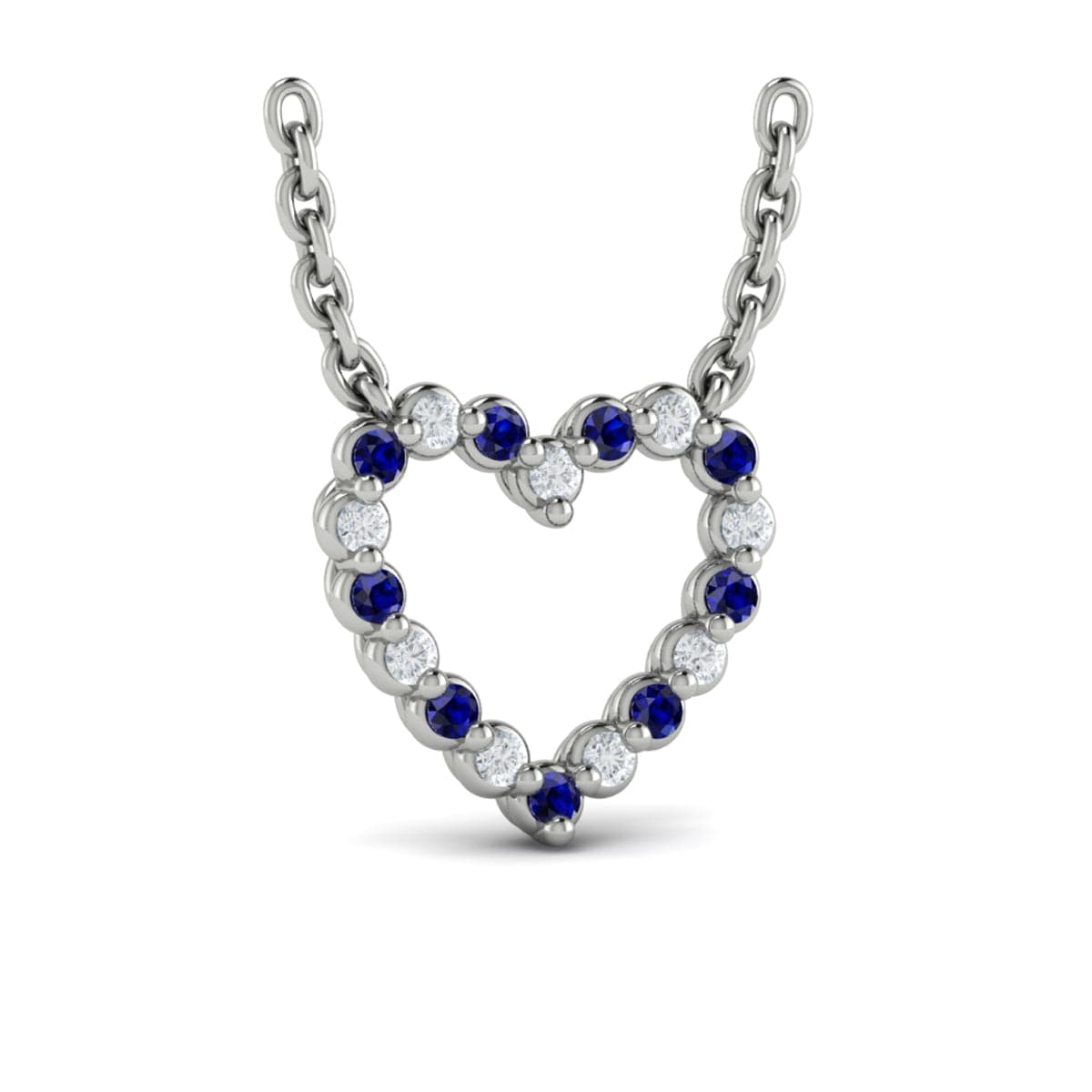 Diamond and Blue Sapphire Open Heart Pendant Link Necklace