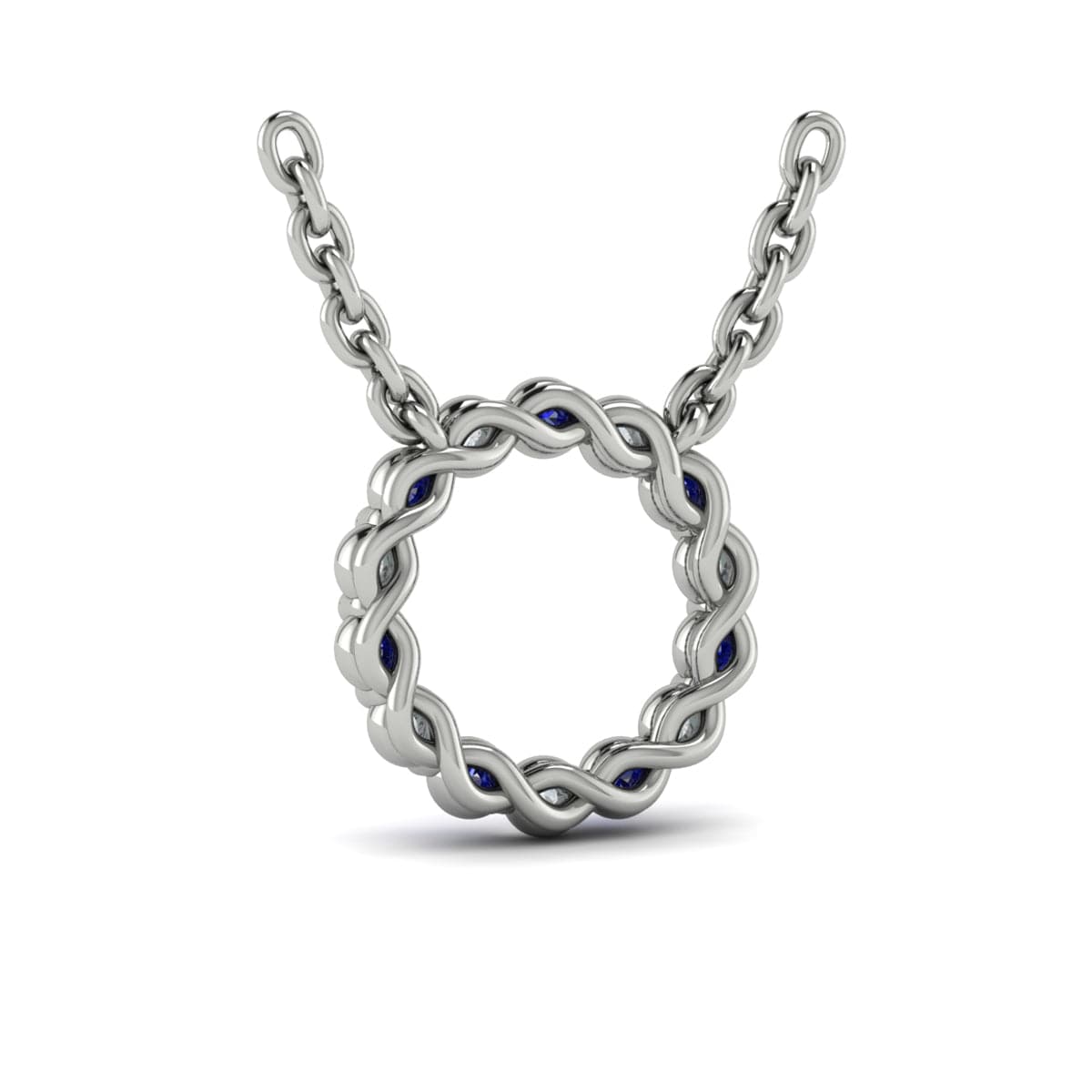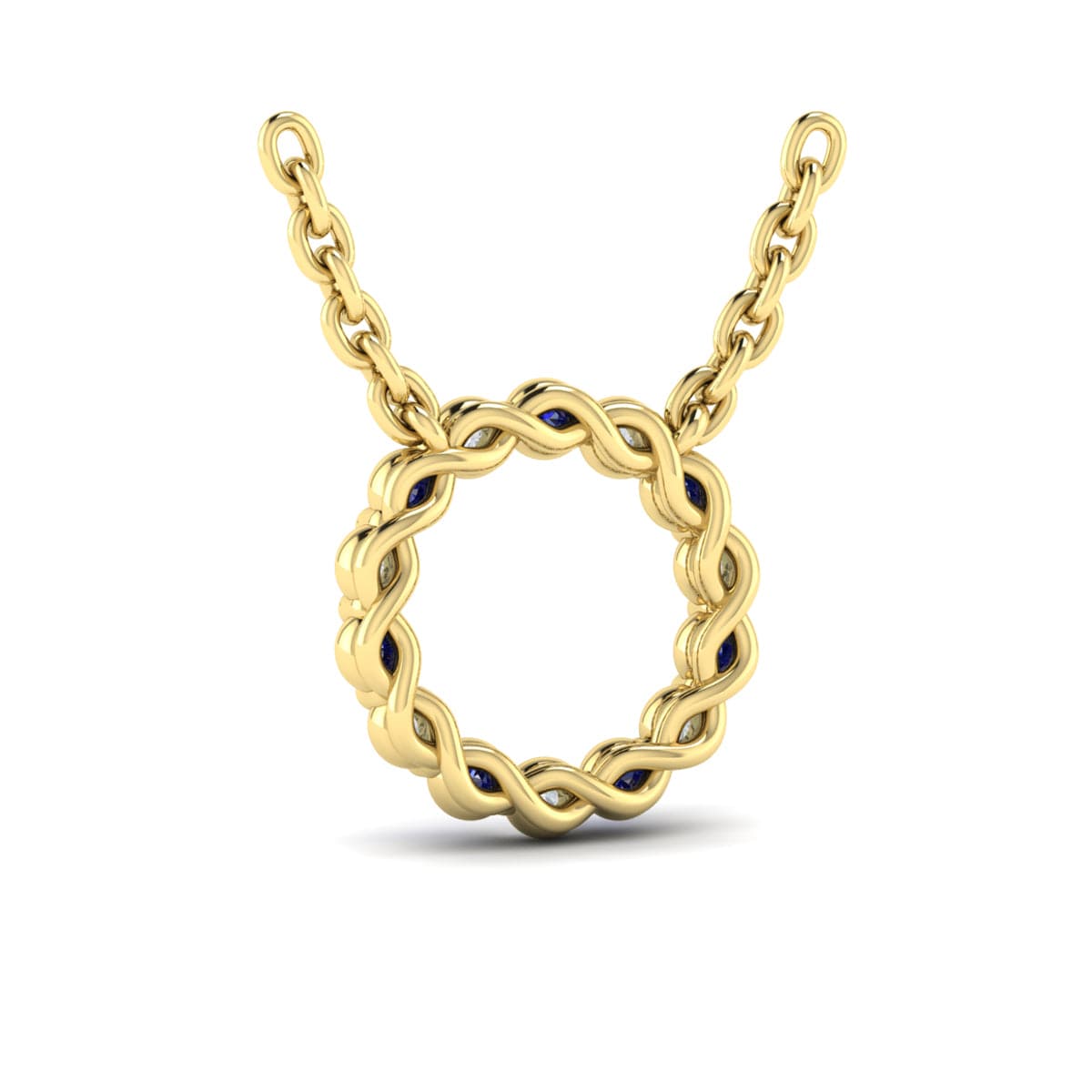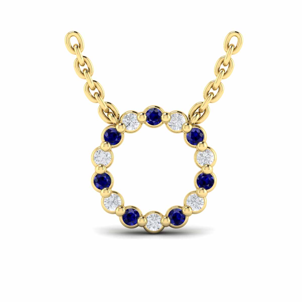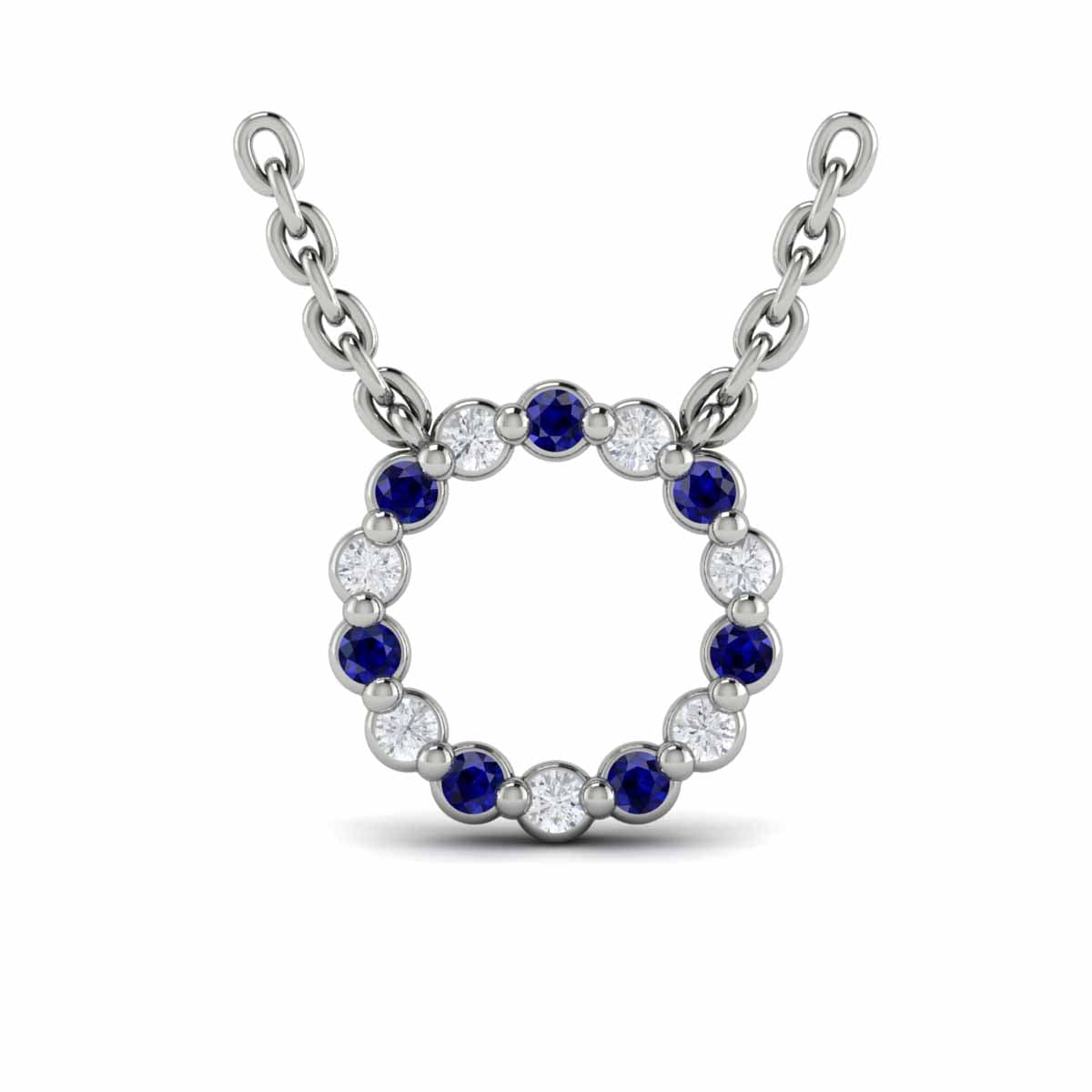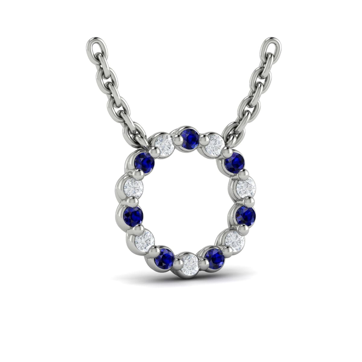 Diamond and Blue Sapphire Open Circle Pendant Link Necklace