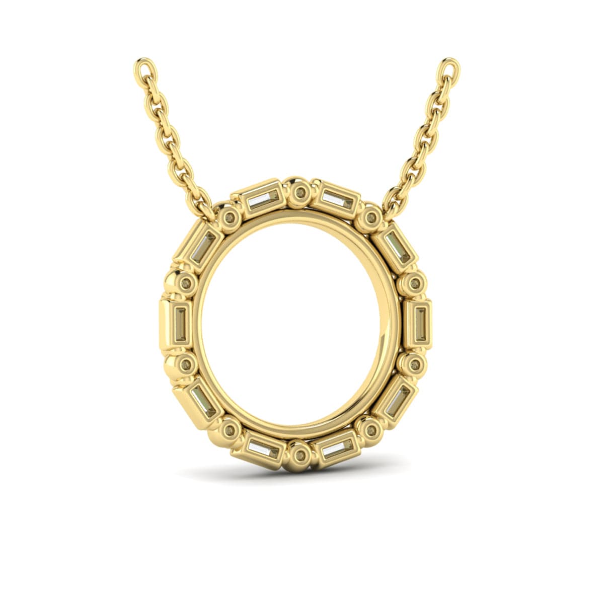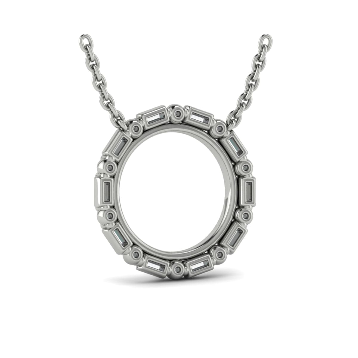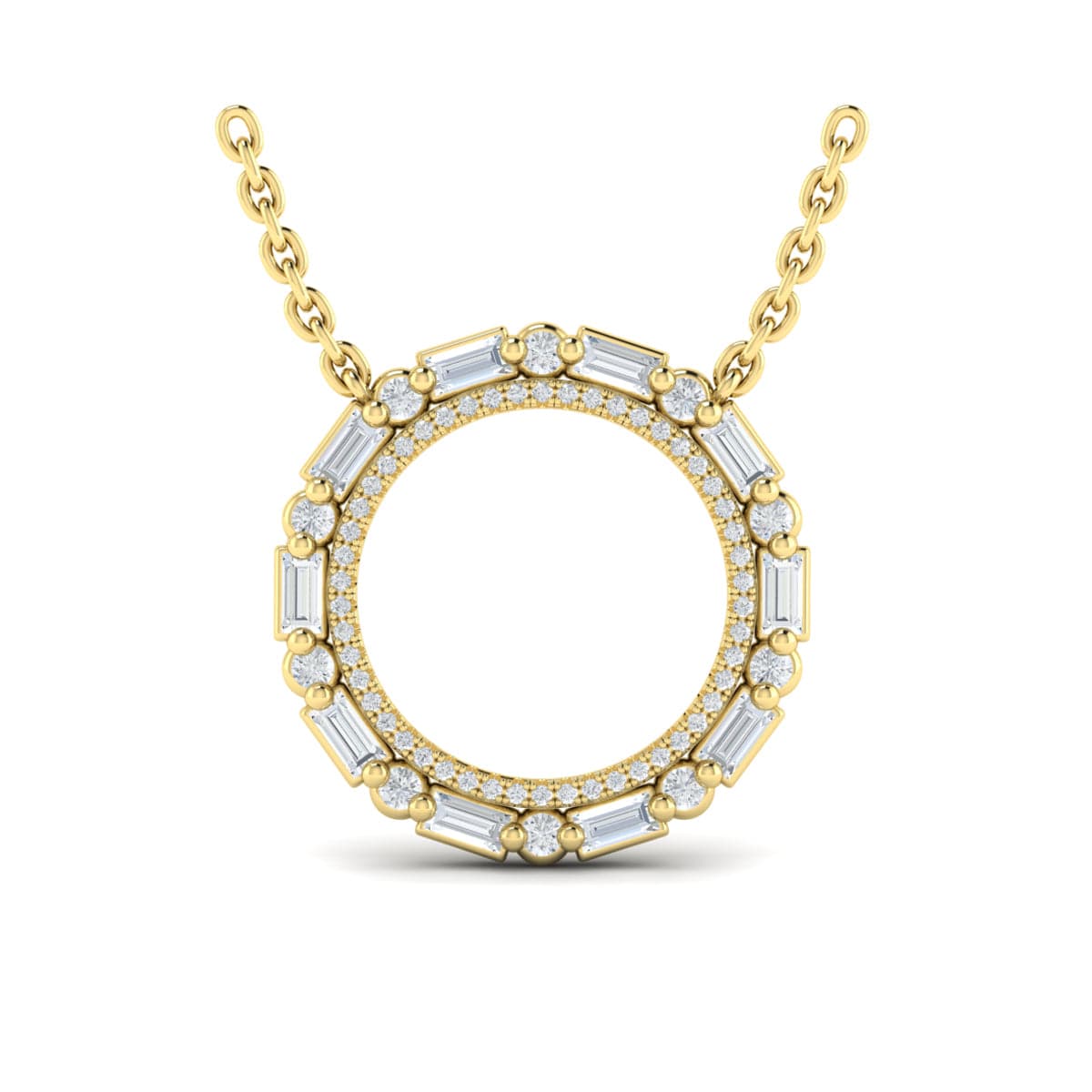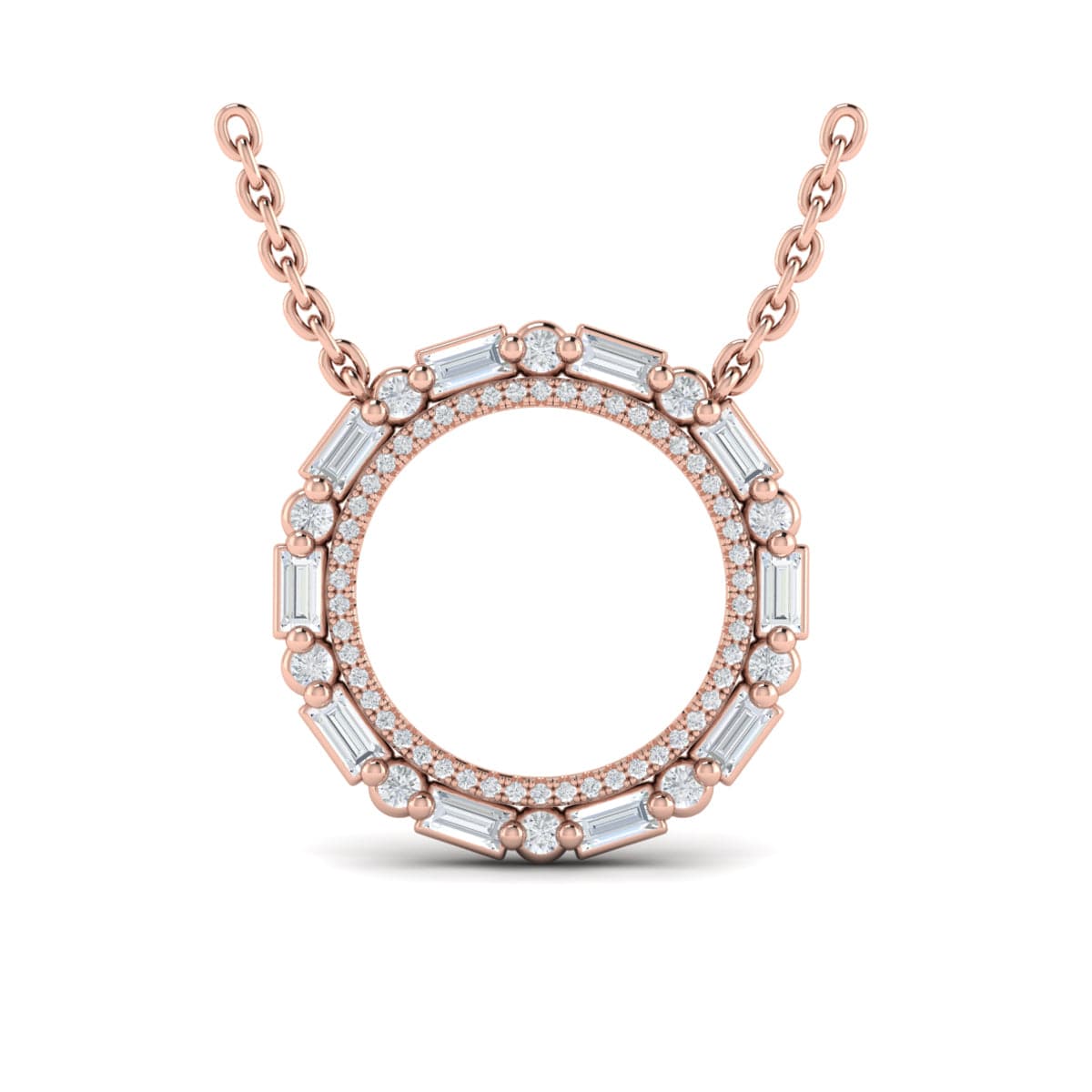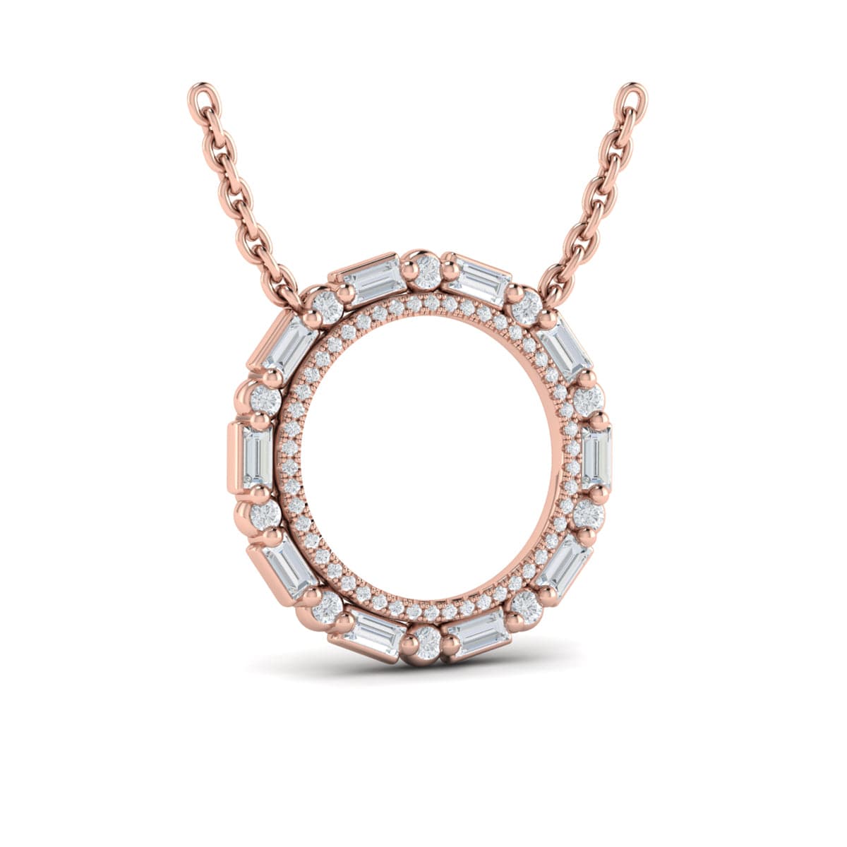 Diamond Baguette Double Open Circle Pendant Necklace
