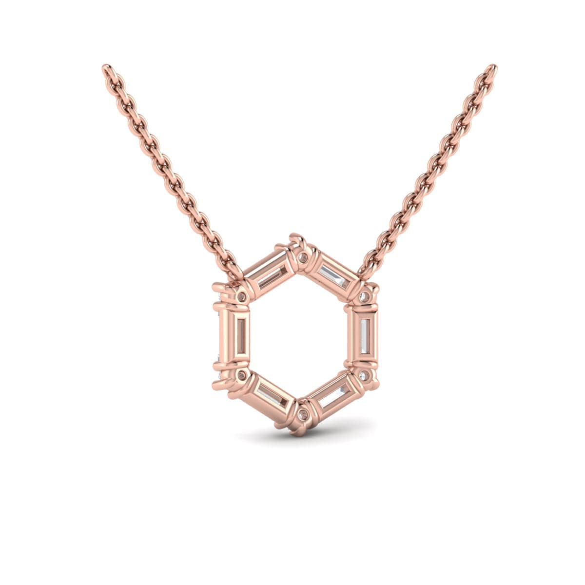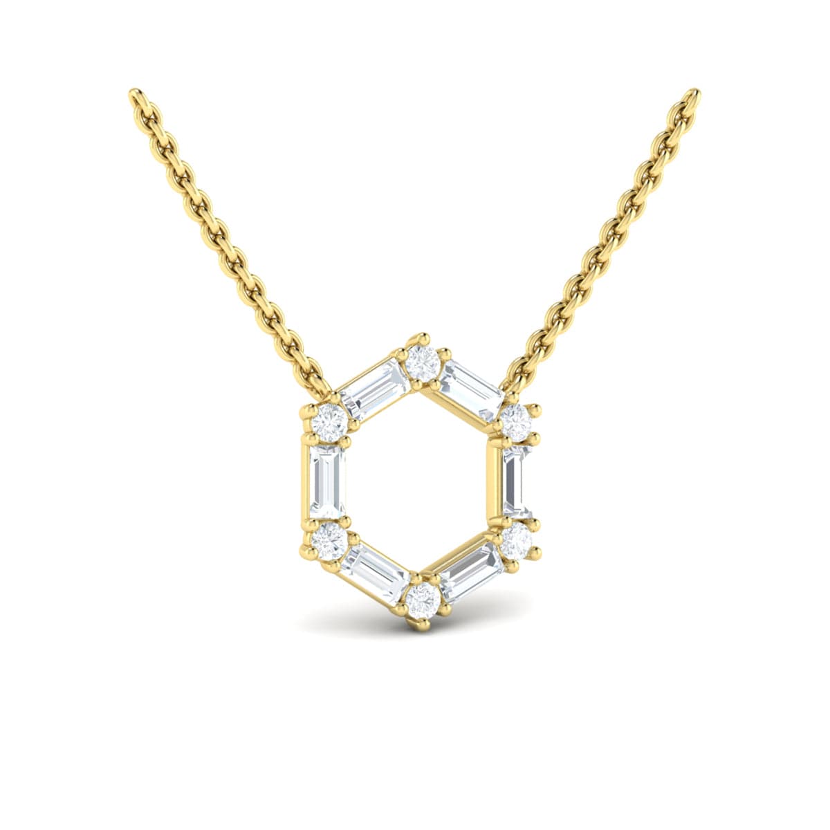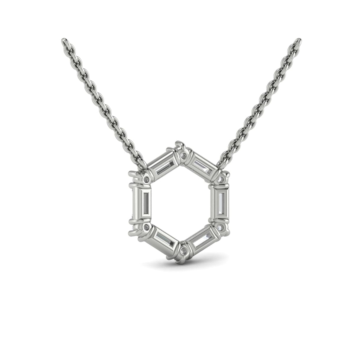 Diamond Baguette Open Honeycomb Pendant Necklace