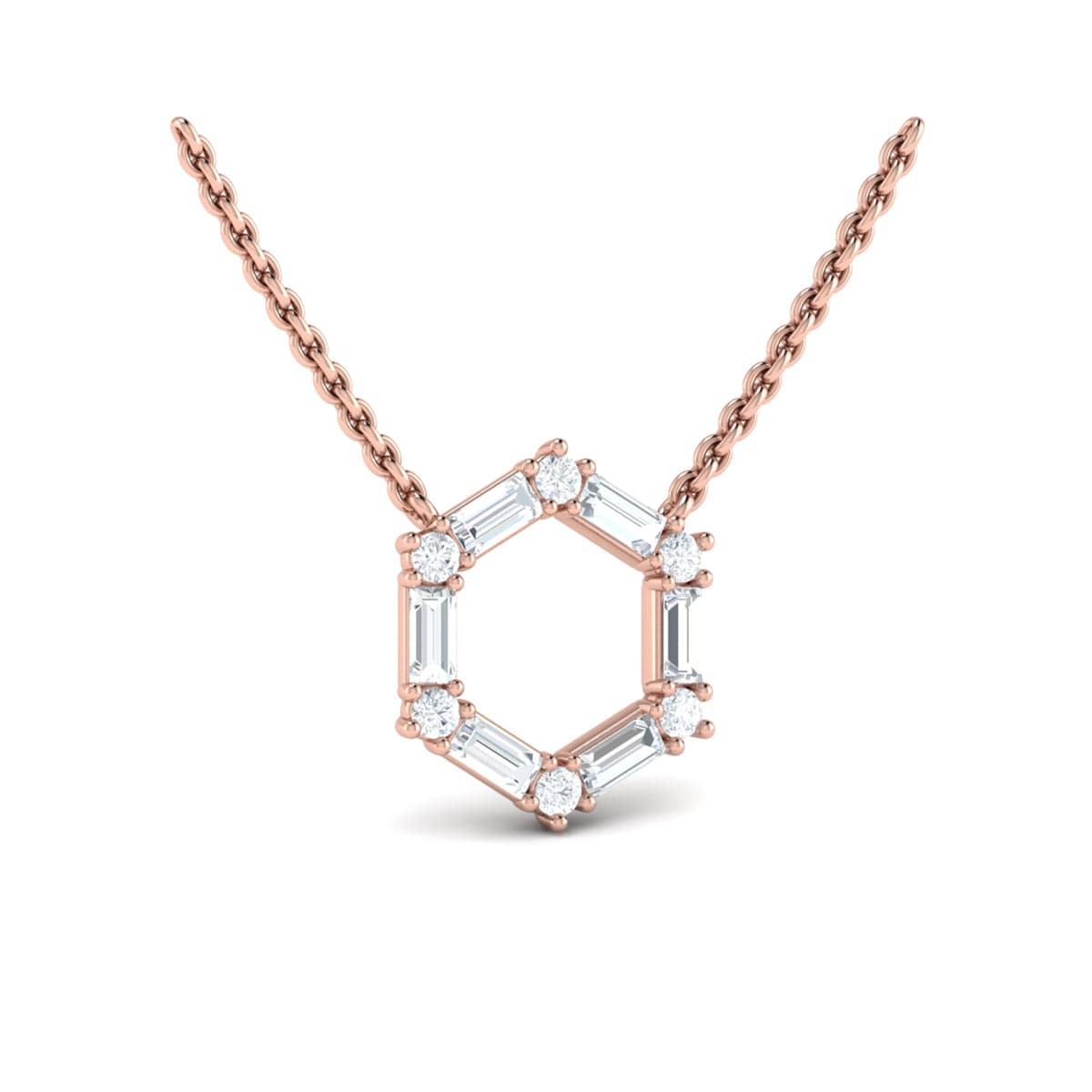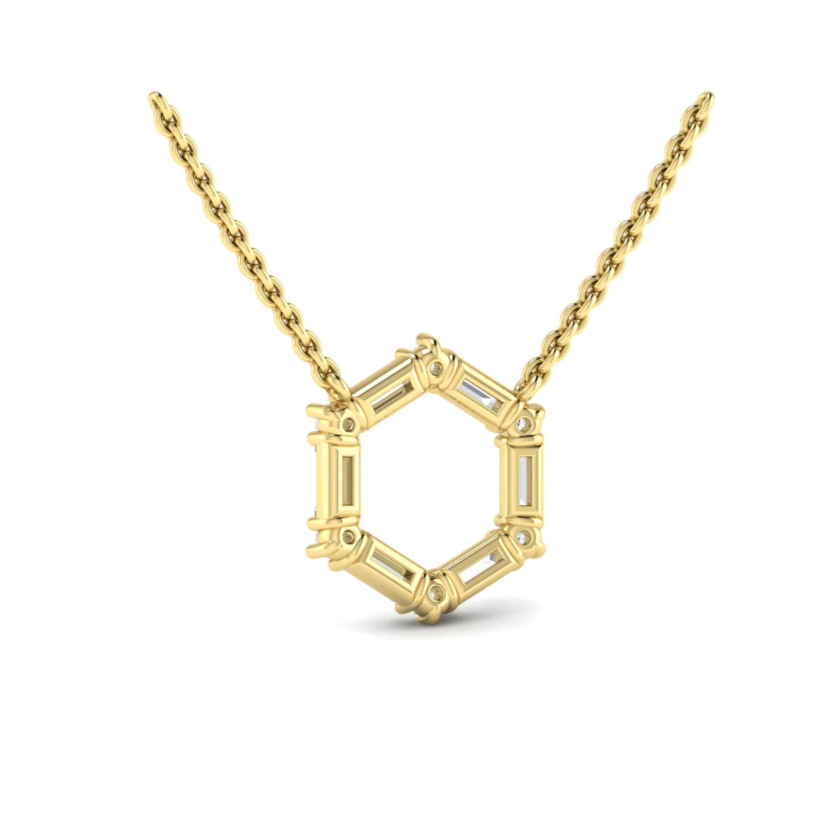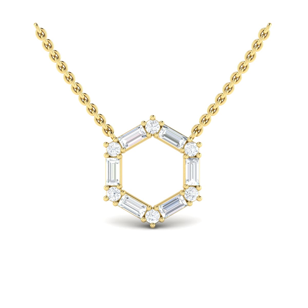Diamond Baguette Open Honeycomb Pendant Necklace