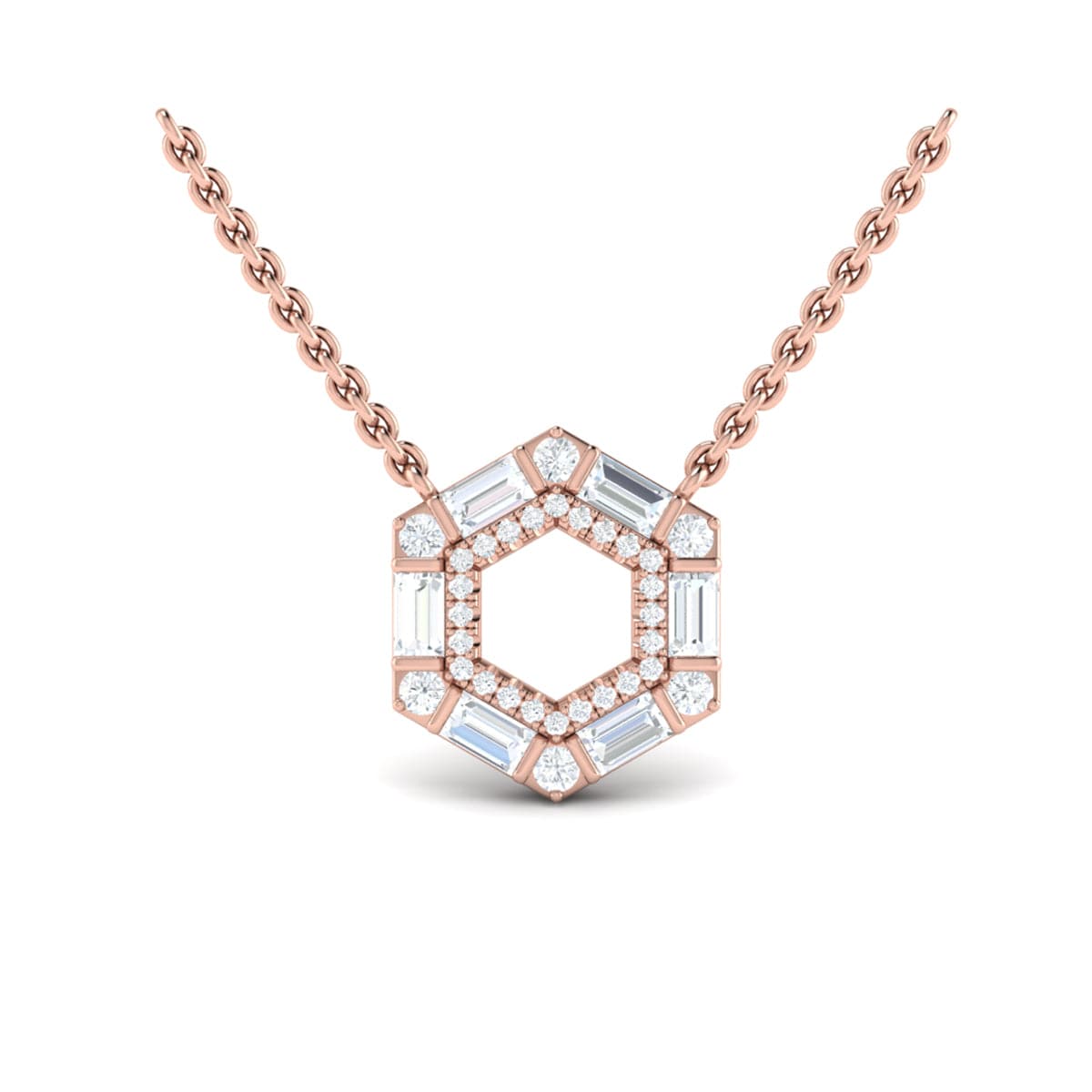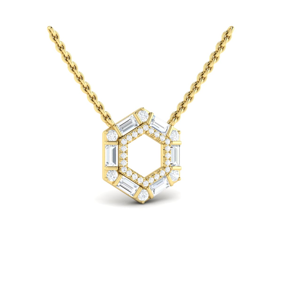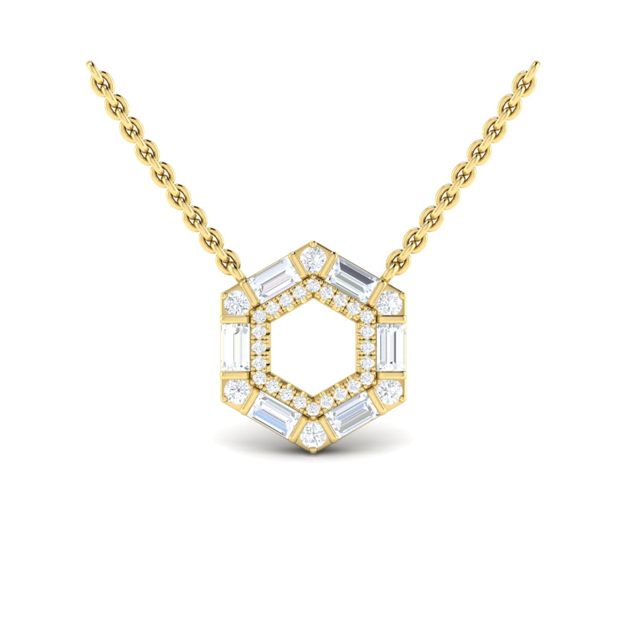 Diamond Baguette Double Row Open Honeycomb Pendant Necklace