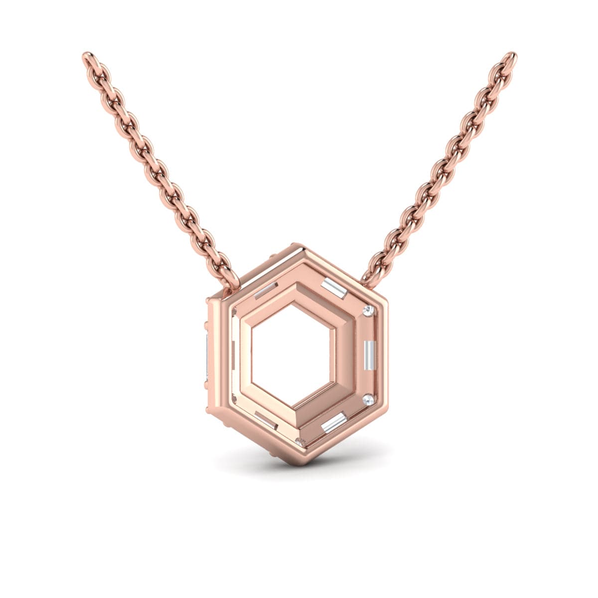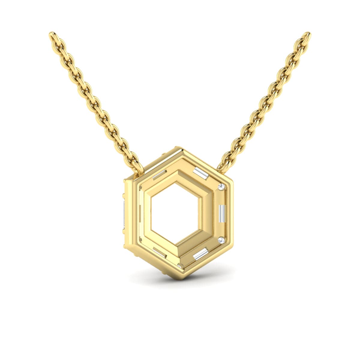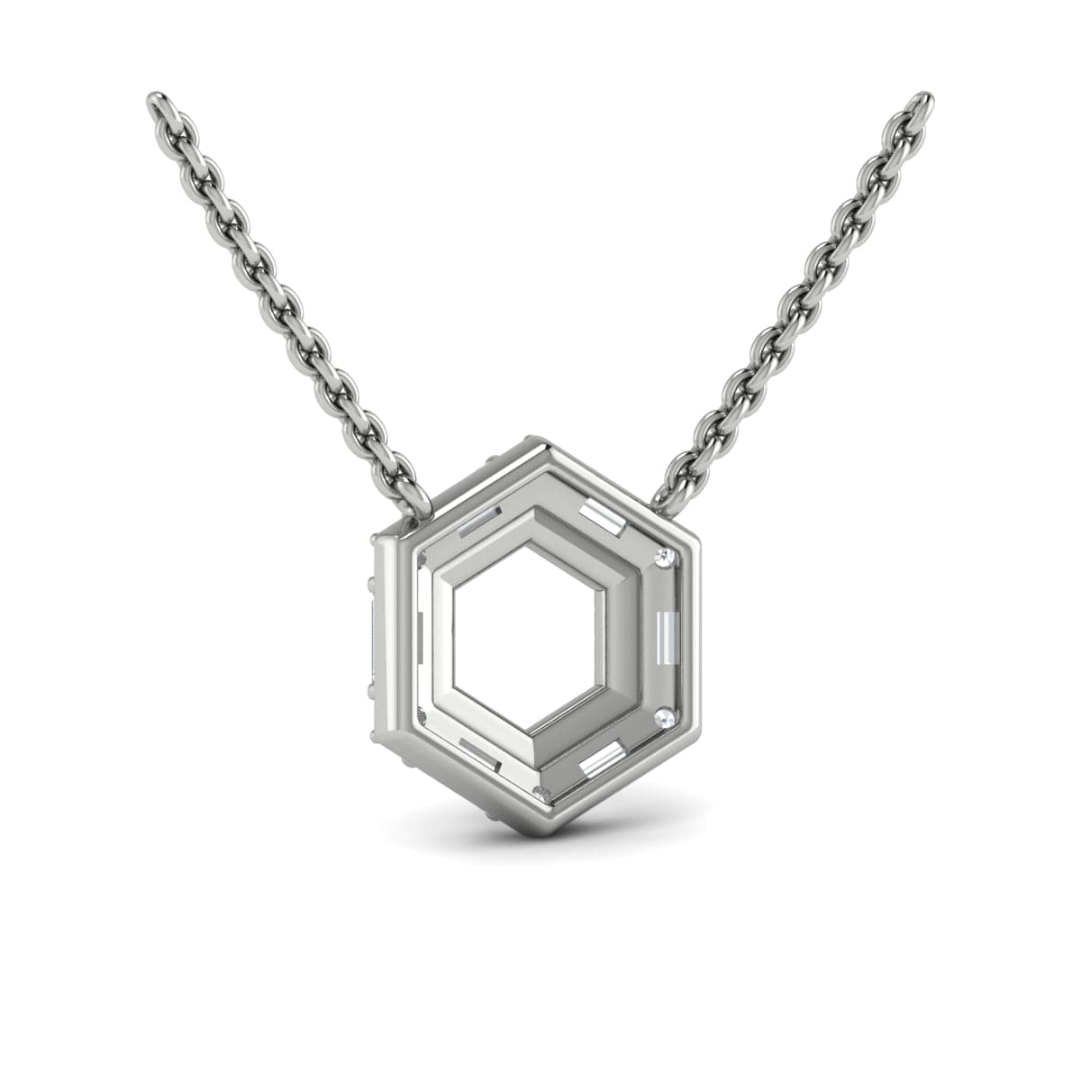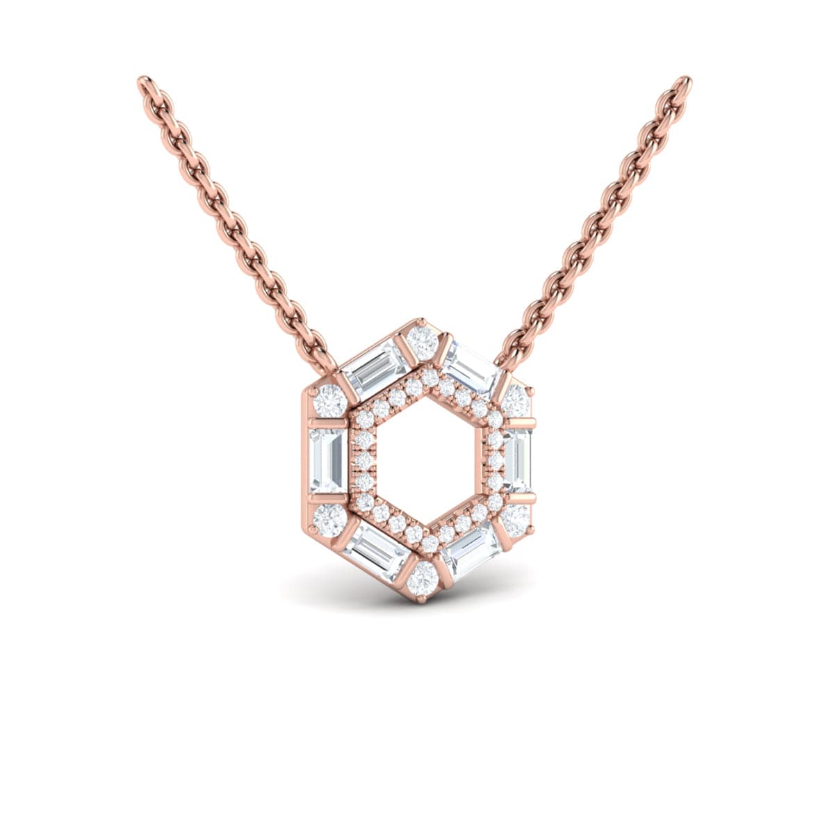 Diamond Baguette Double Row Open Honeycomb Pendant Necklace