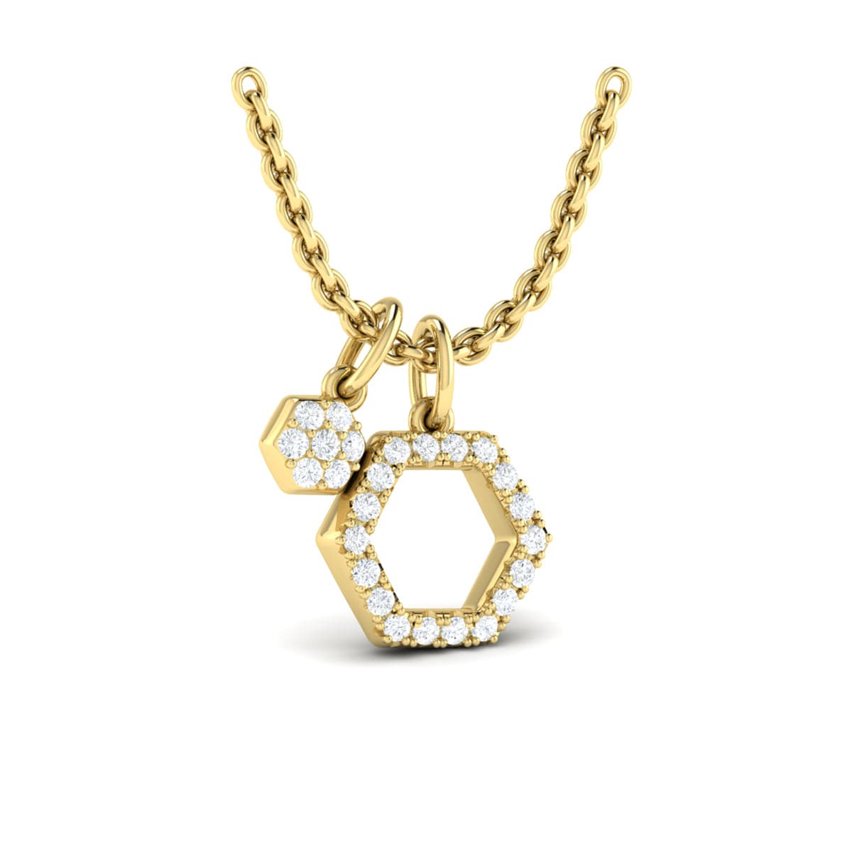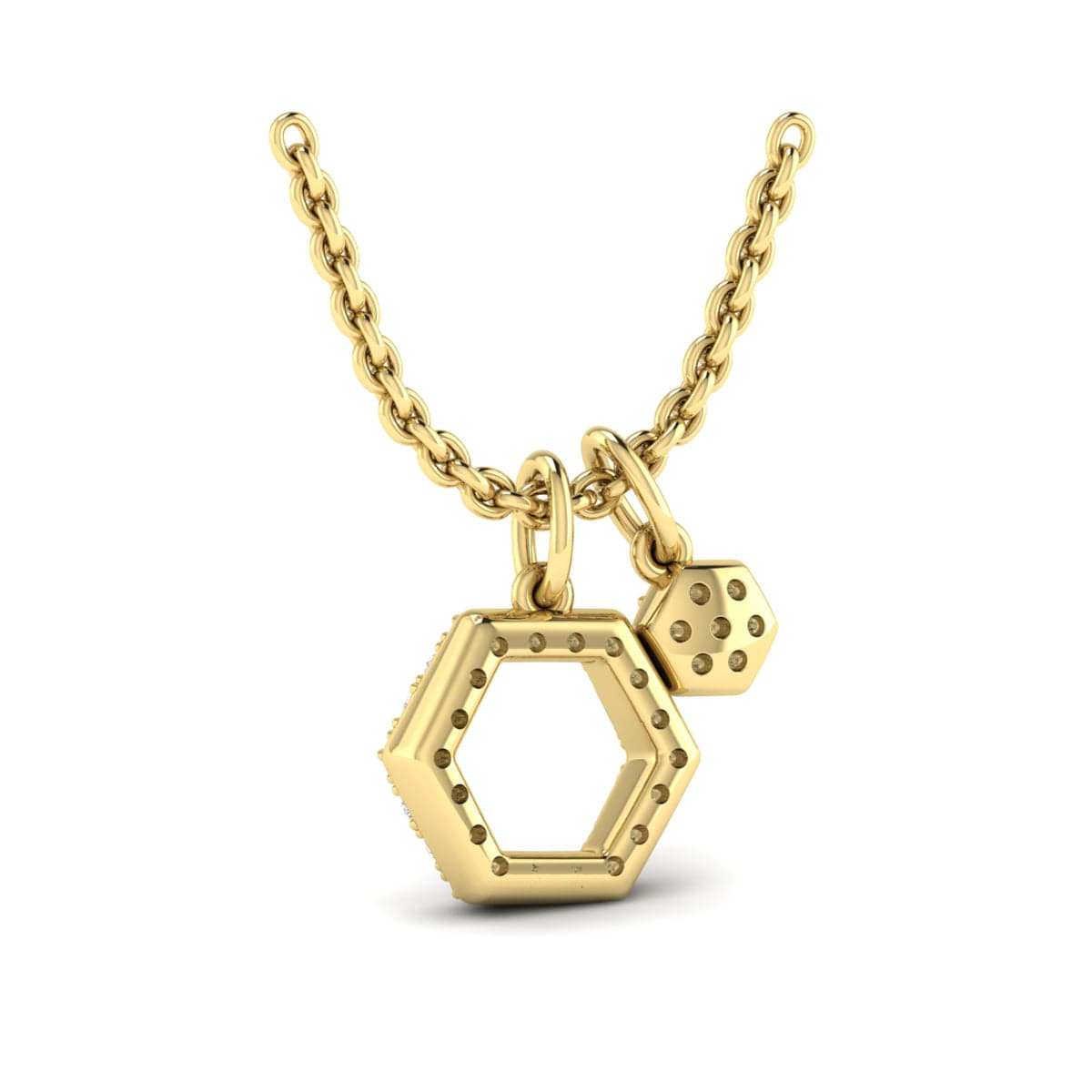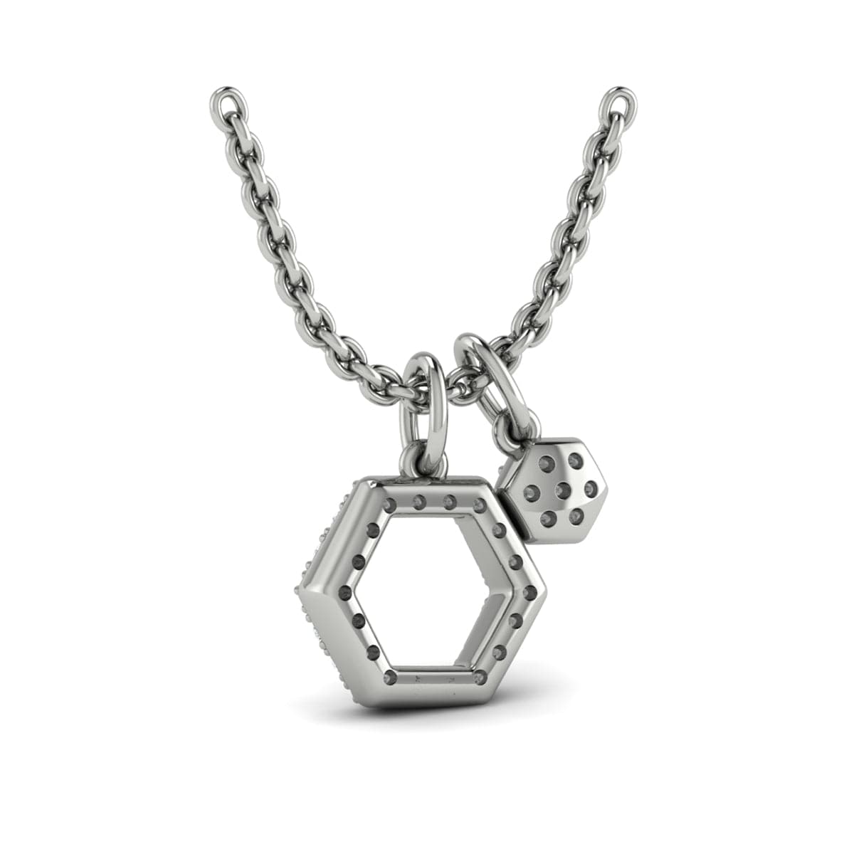 Diamond Open Honeycomb with Mini Diamond Honeycomb Charm Pendant Necklace