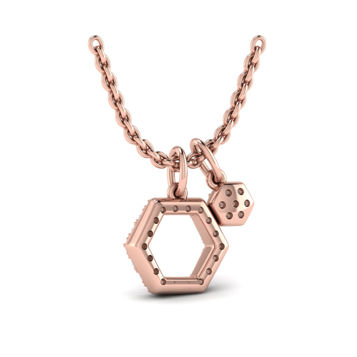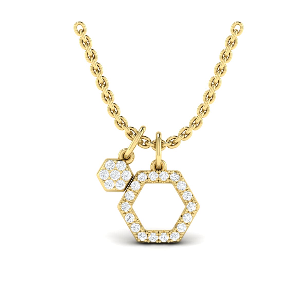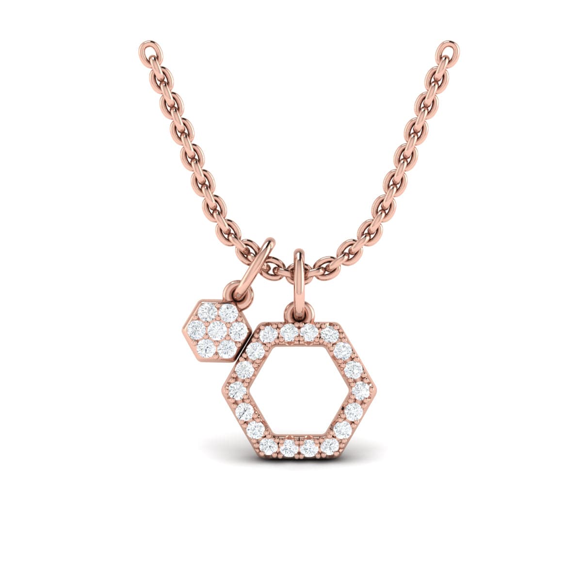 Diamond Open Honeycomb with Mini Diamond Honeycomb Charm Pendant Necklace