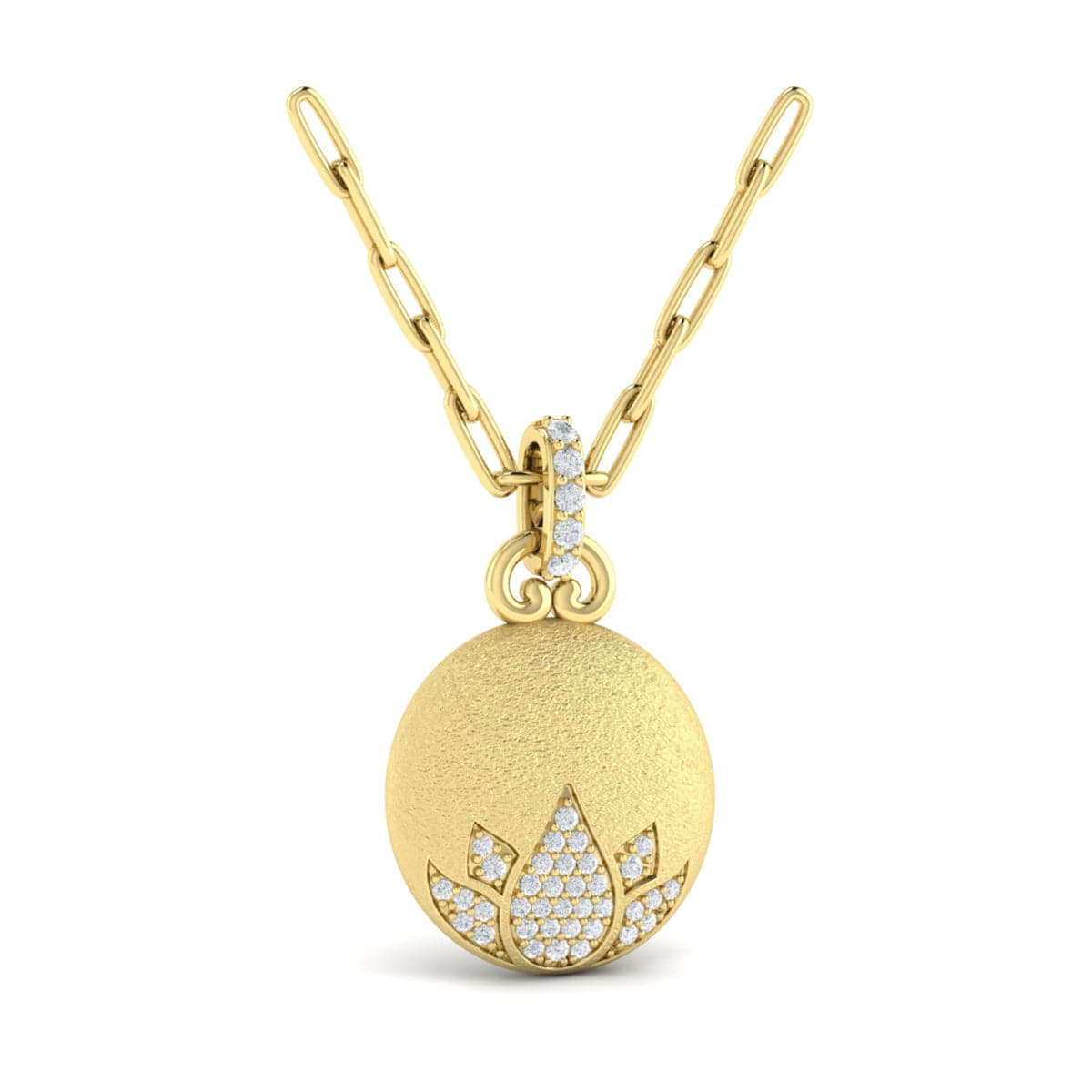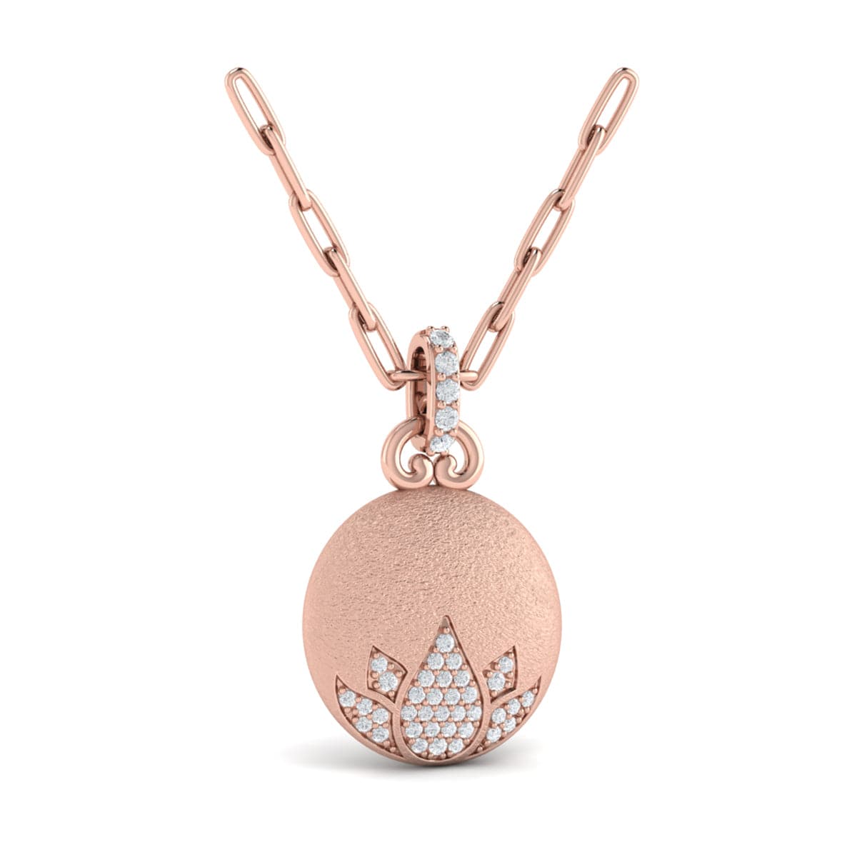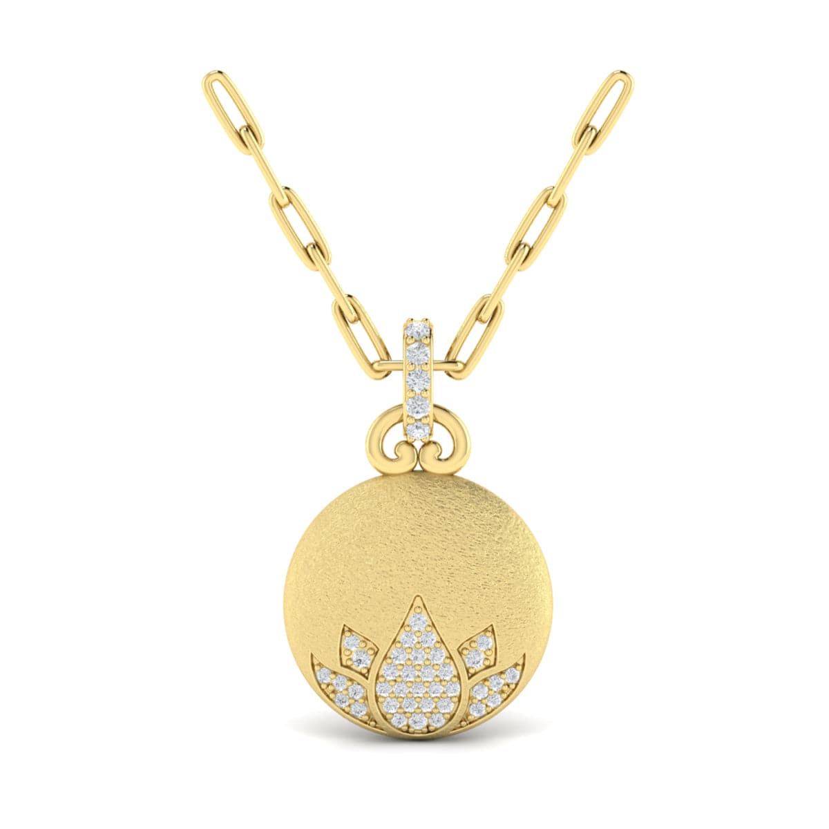 Diamond Lotus Flower Pendant Link Necklace