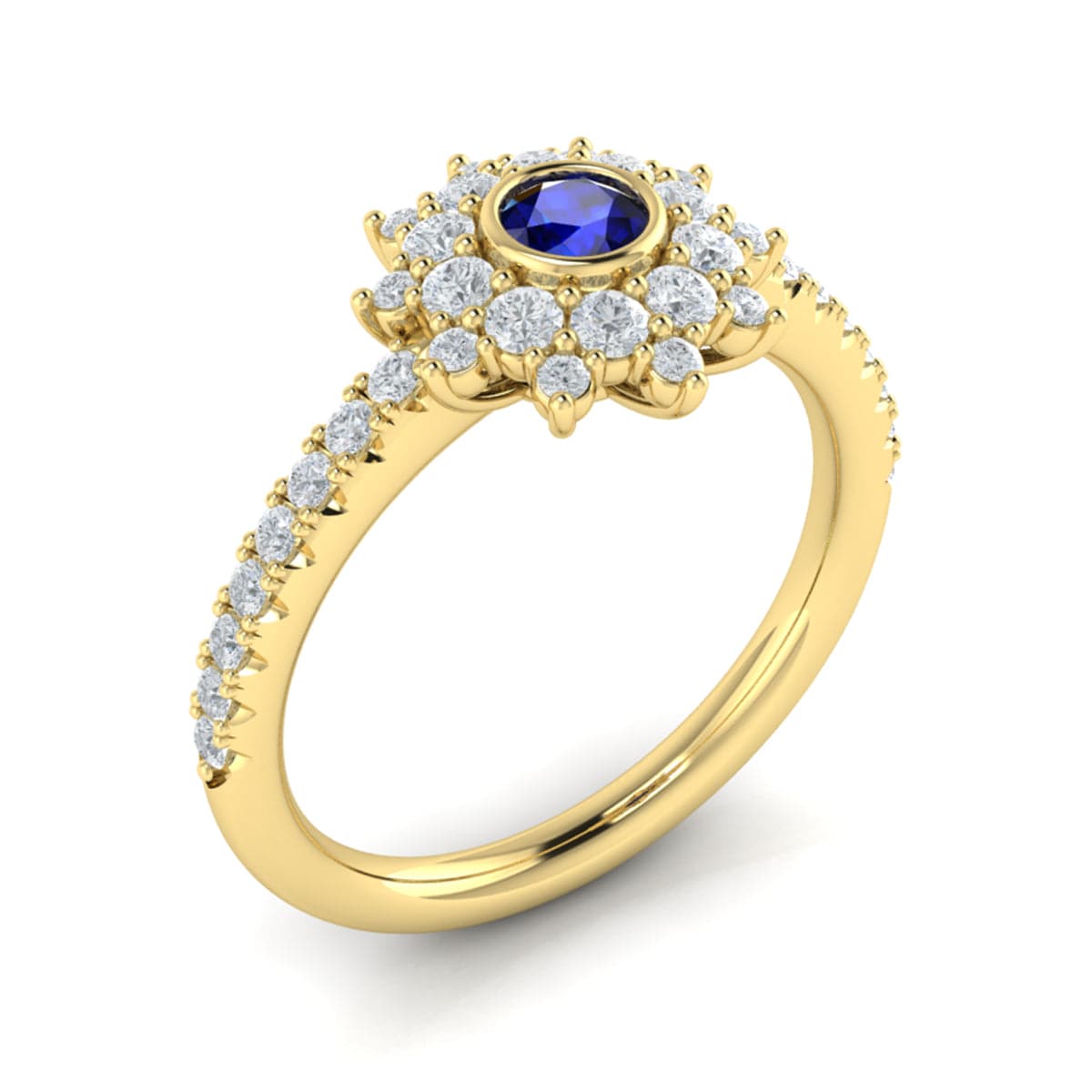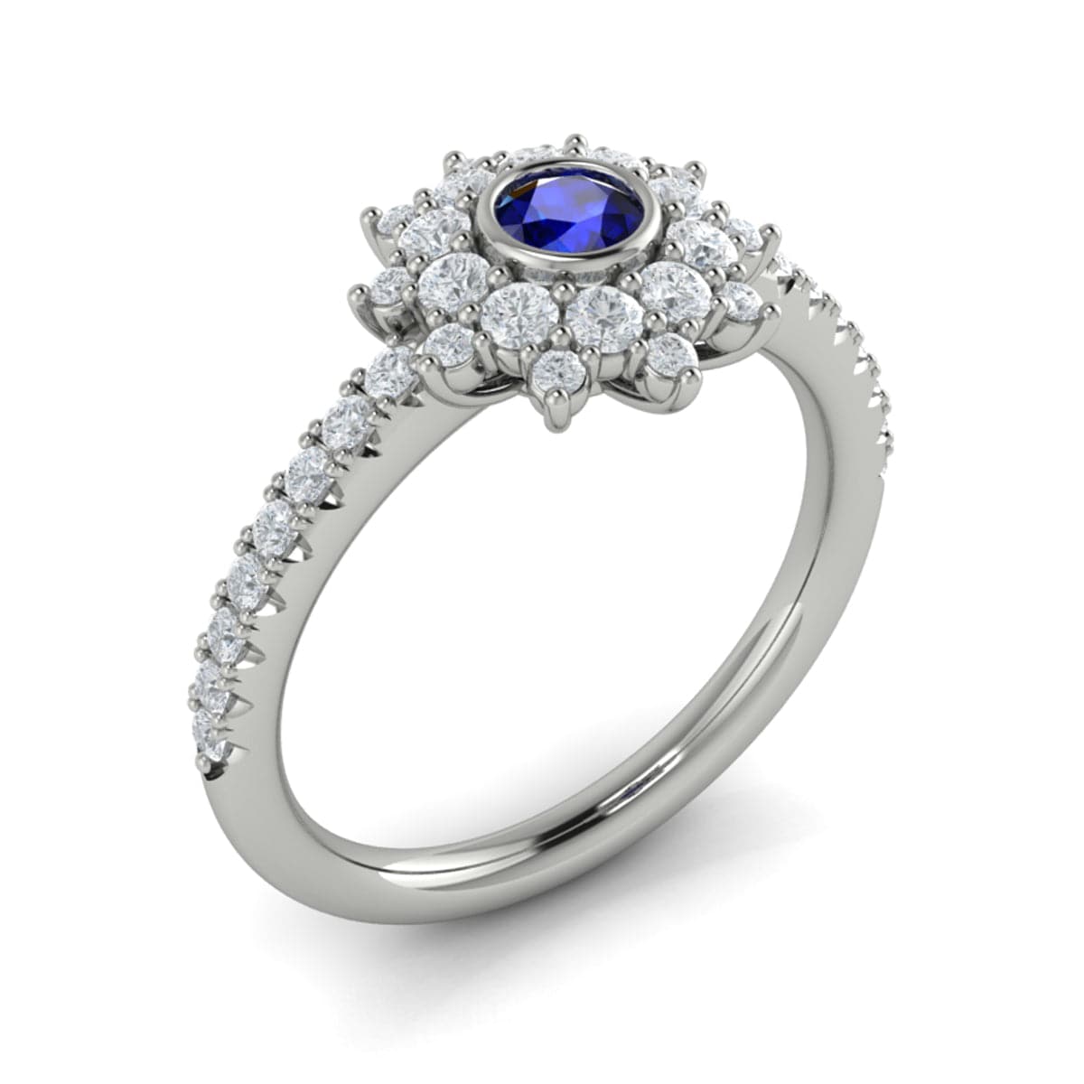 Diamond Starburst with Blue Sapphire Centerstone Ring