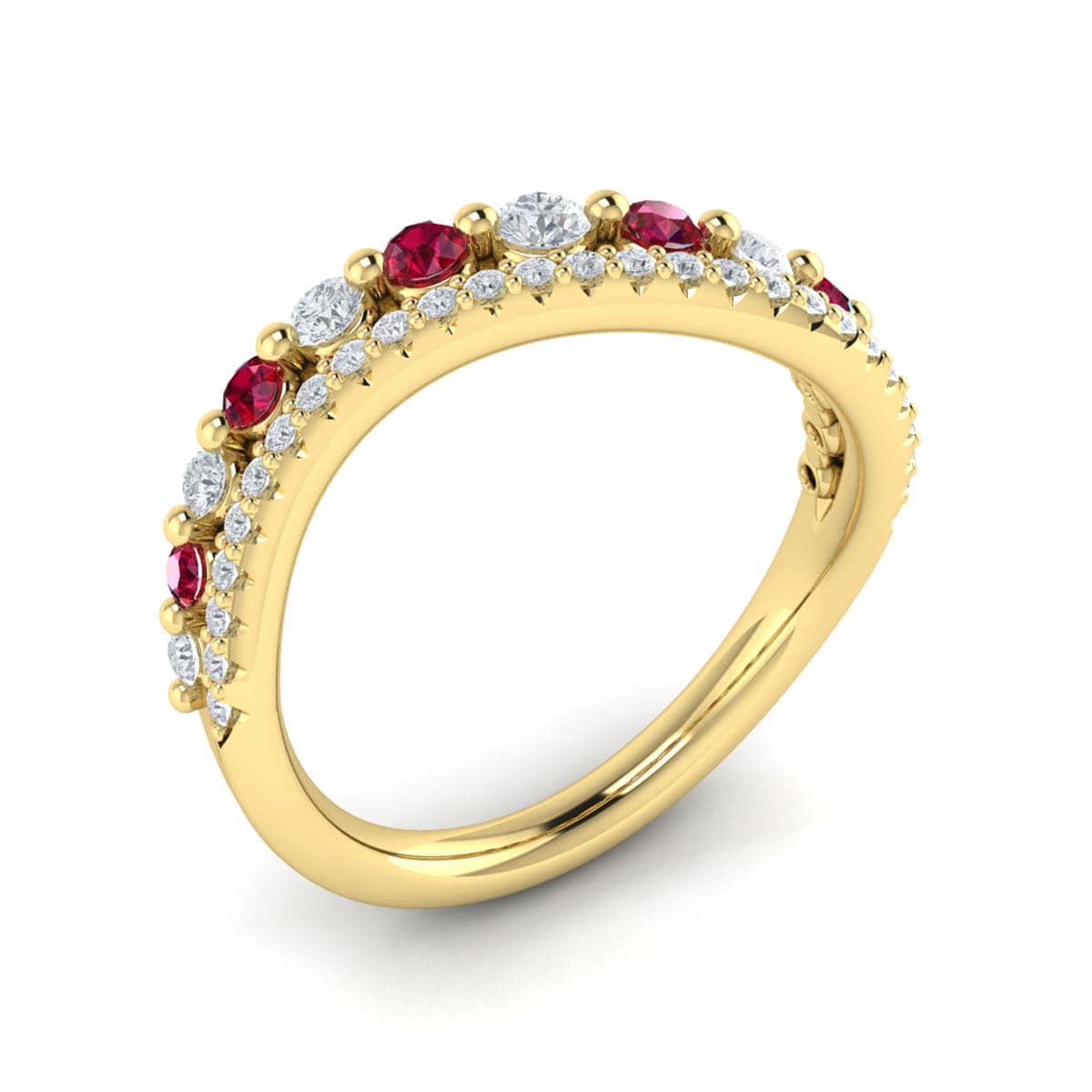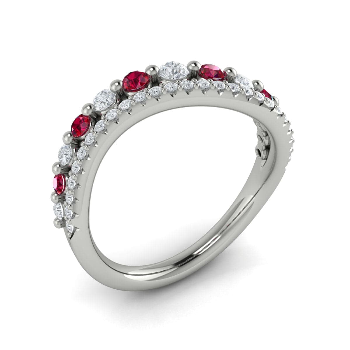 Diamond and Ruby Two Row Curved Ring