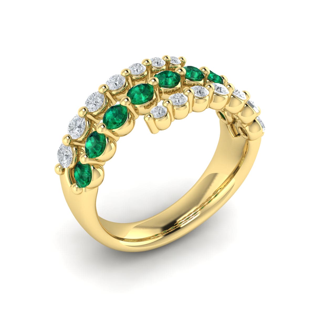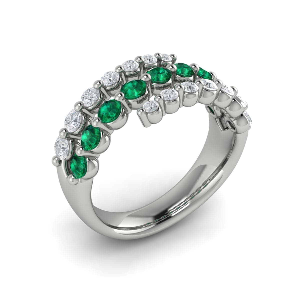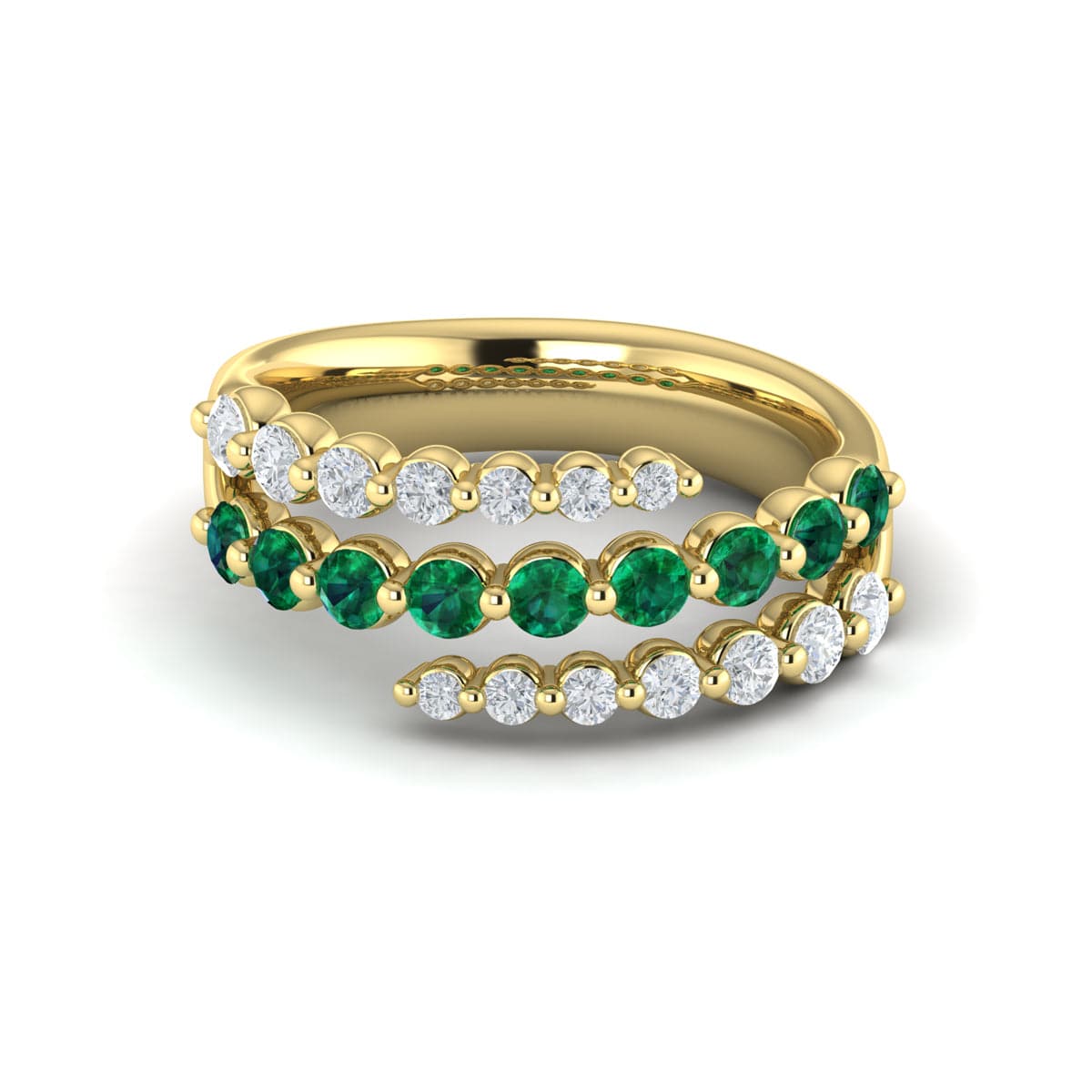Diamond and Emerald Three Row Wrap Ring
