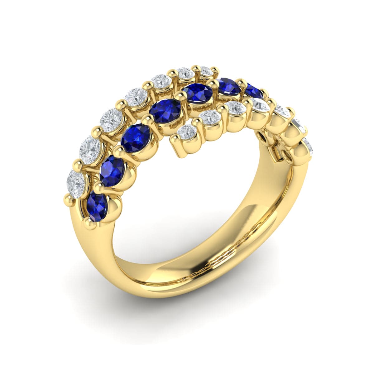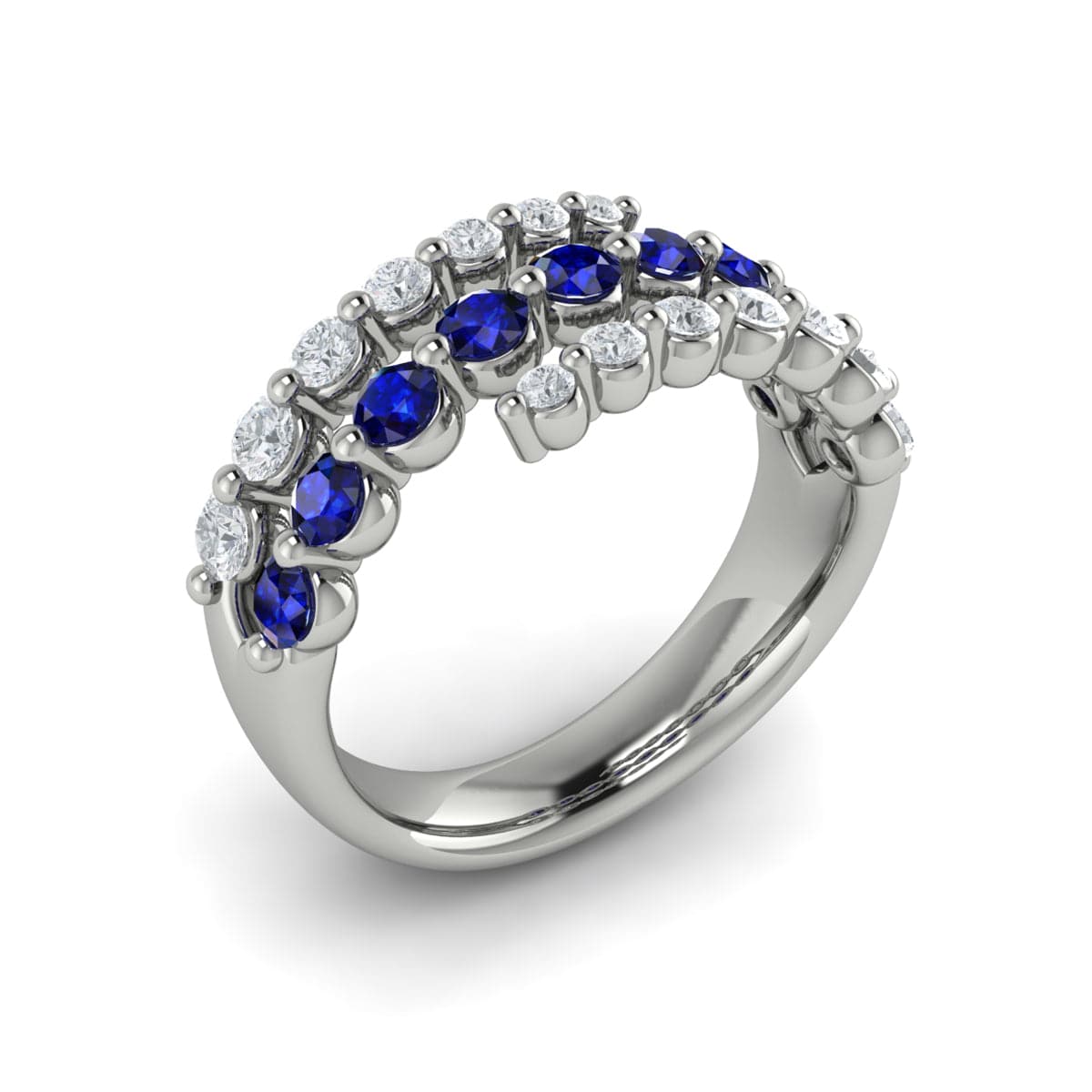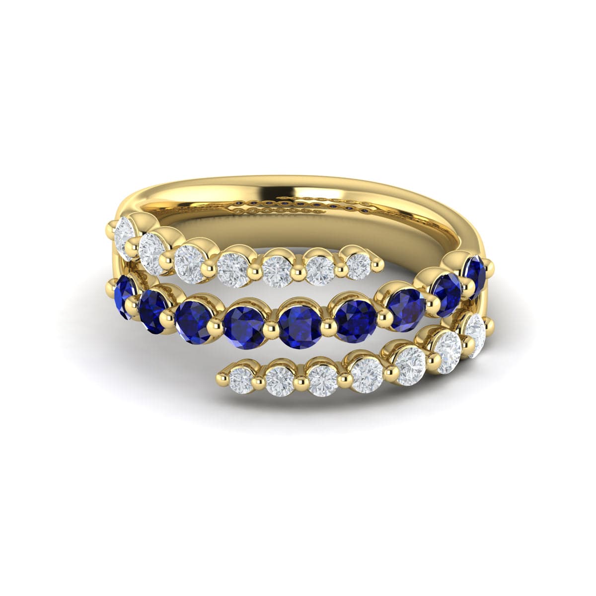 Diamond and Blue Sapphire Three Row Wrap Ring