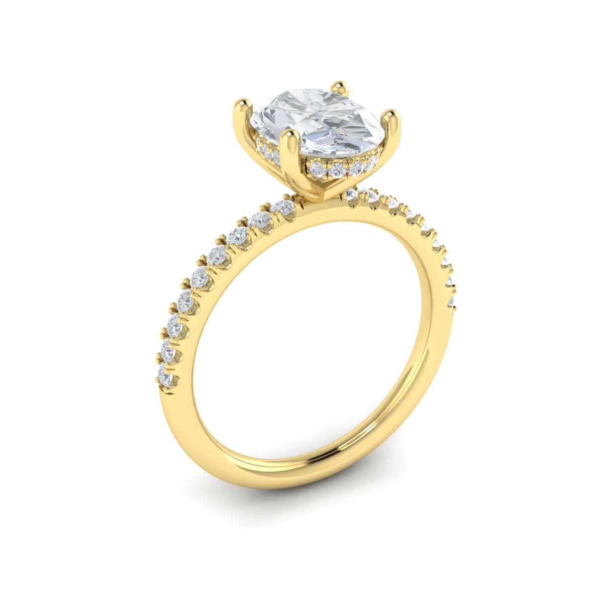*Best Seller Thin Oval Solitaire Diamond Engagement Ring with Under Halo