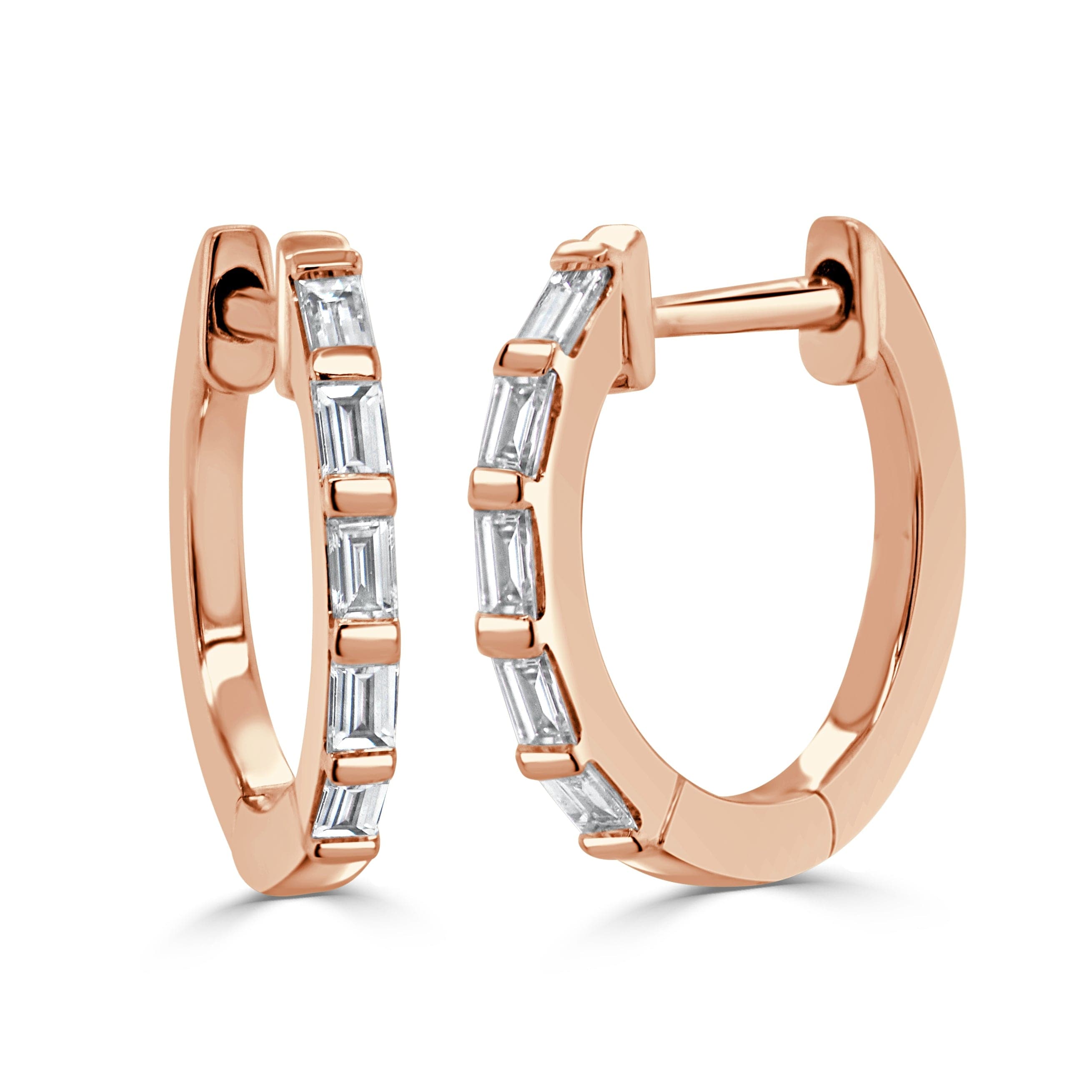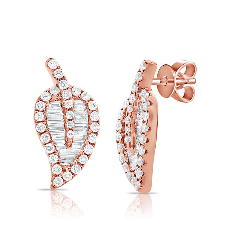 14k Gold & Diamond Baguette Leaf Stud Earrings