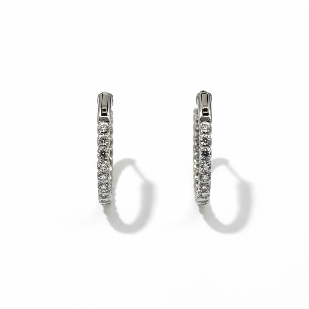 0.48 TCW Bezel Set Natural Round Brilliant Hoop Earrings