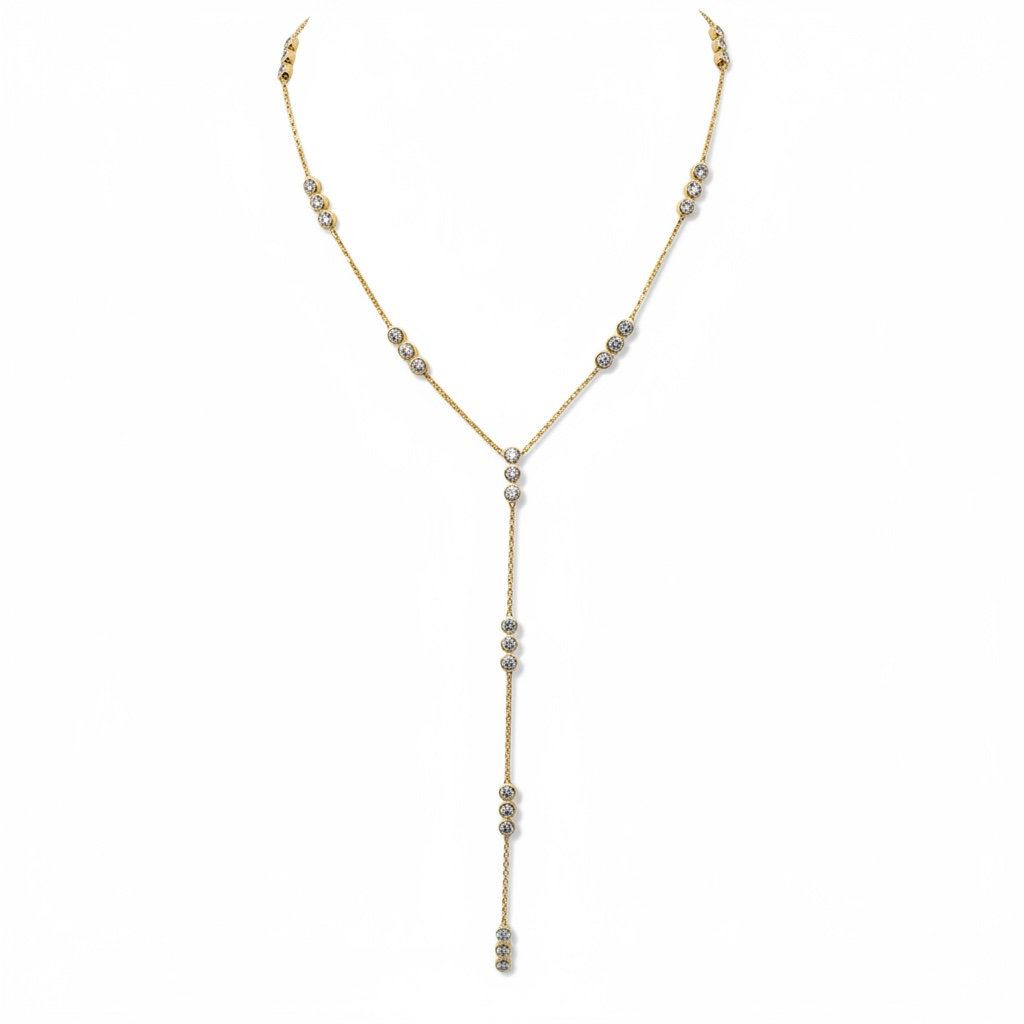 3.20 tcw Bezel Set Natural Diamond Lariat Necklace