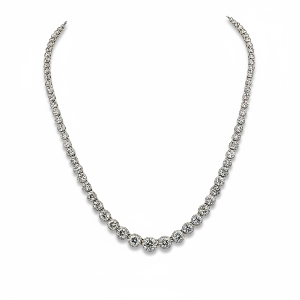 15.00 tcw Natural Diamond Bezel Set and Milgrain Tennis Necklace