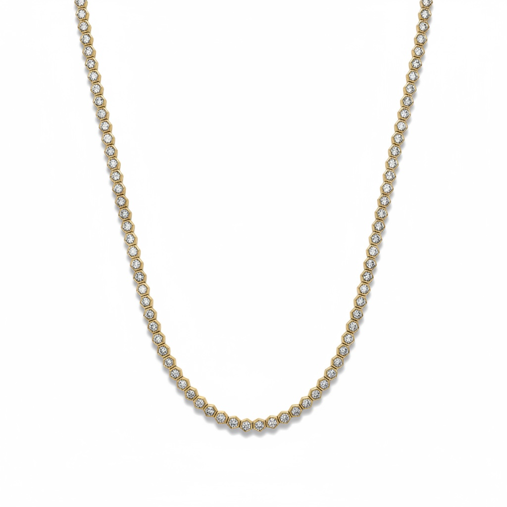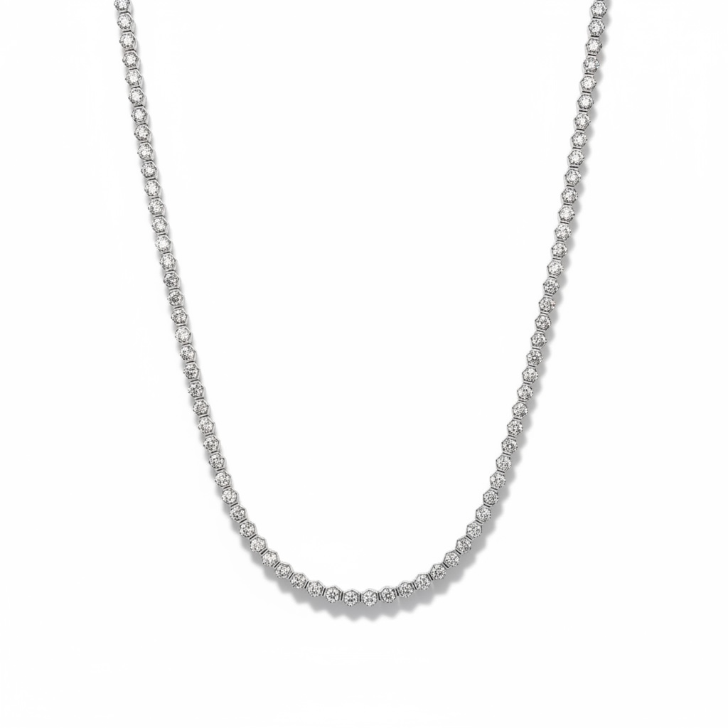 3.20 tcw Honeycomb Bezel Set Natural Tennis Necklace