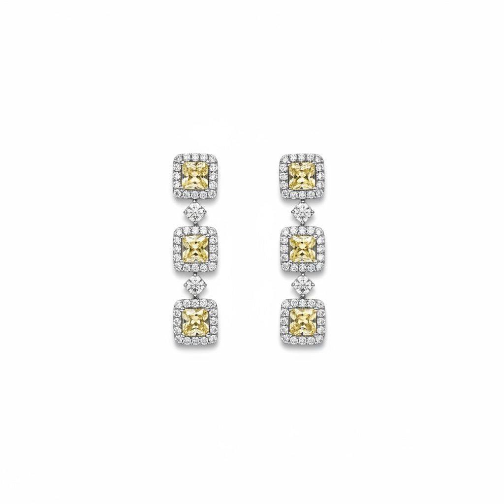 5.46 TCW Princess Cut Natural Yellow Diamond Drop Earrings